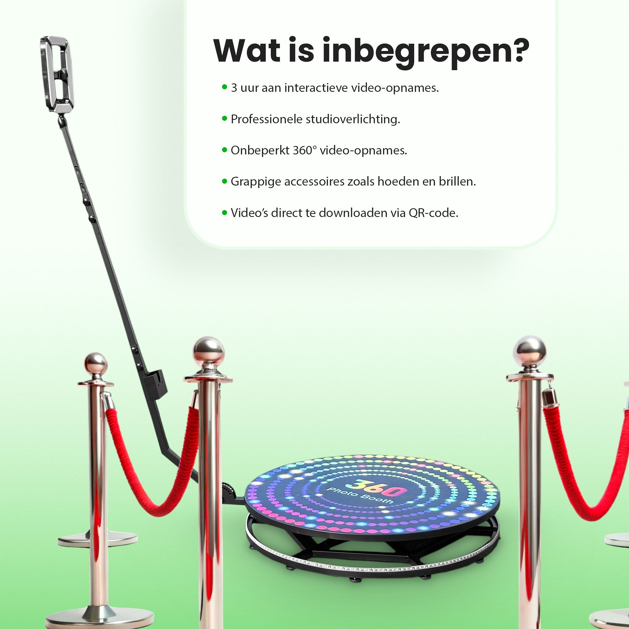 Perfect voor elke gelegenheid waar u net dat beetje extra interactie en plezier wilt toevoegen. Creëer herinneringen die blijven hangen – laat uw gasten schitteren in een 360° ervaring!