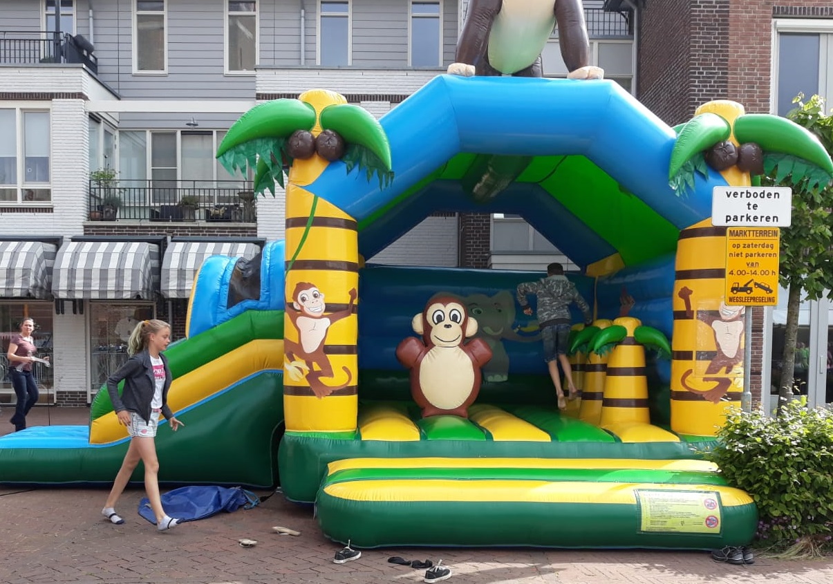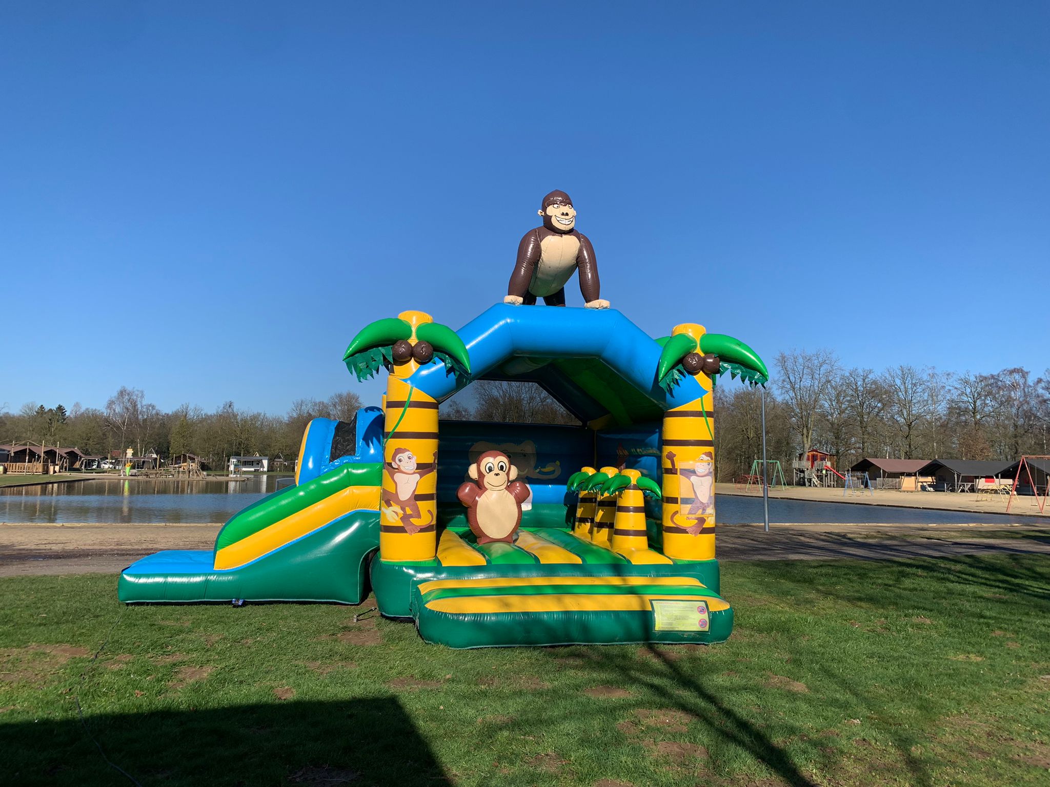 Ben je op zoek naar een divers luchtkussen? Dan is de multiplay aap een juiste keuze! Klim, klauter, glij en spring samen met de aapjes in deze jungle. Door de diversiteit van dit luchtkussen zullen kinderen niet snel verveeld raken. Daarnaast is dit kussen een echte eyecatcher door de grote palmbomen en aap die overal bovenuit steken.