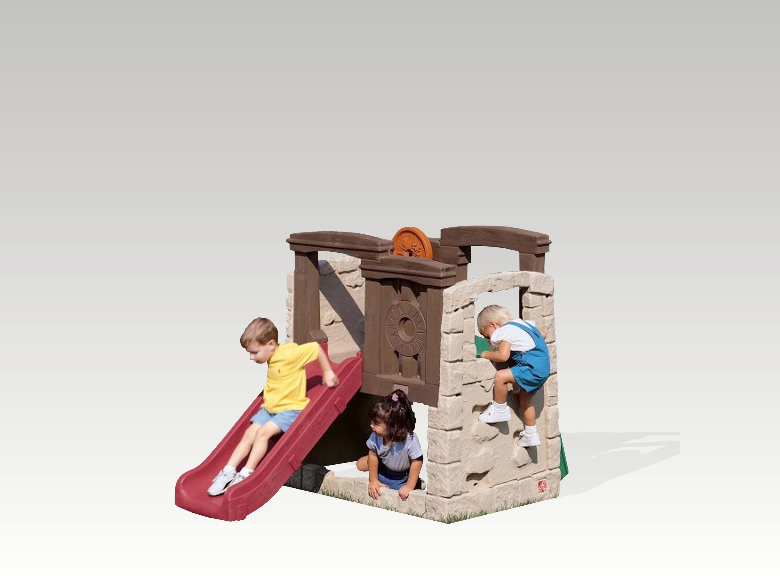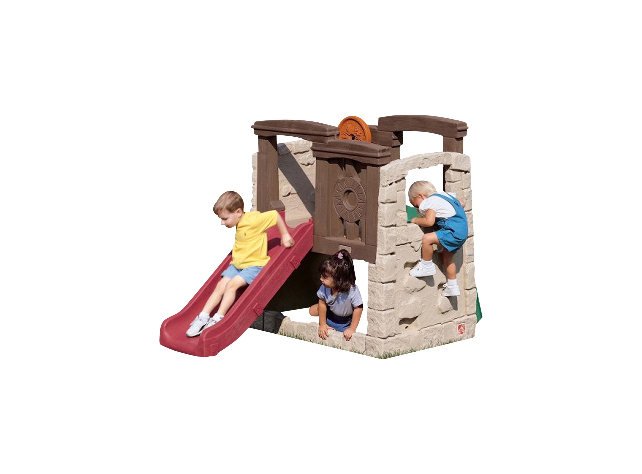 Een speeltoren inclusief glijbaan. Via de achterzijde is dit speelhuis eenvoudig met een ladder te beklimmen.Bovenop de toren zit een stuurwiel dat kan draaien.