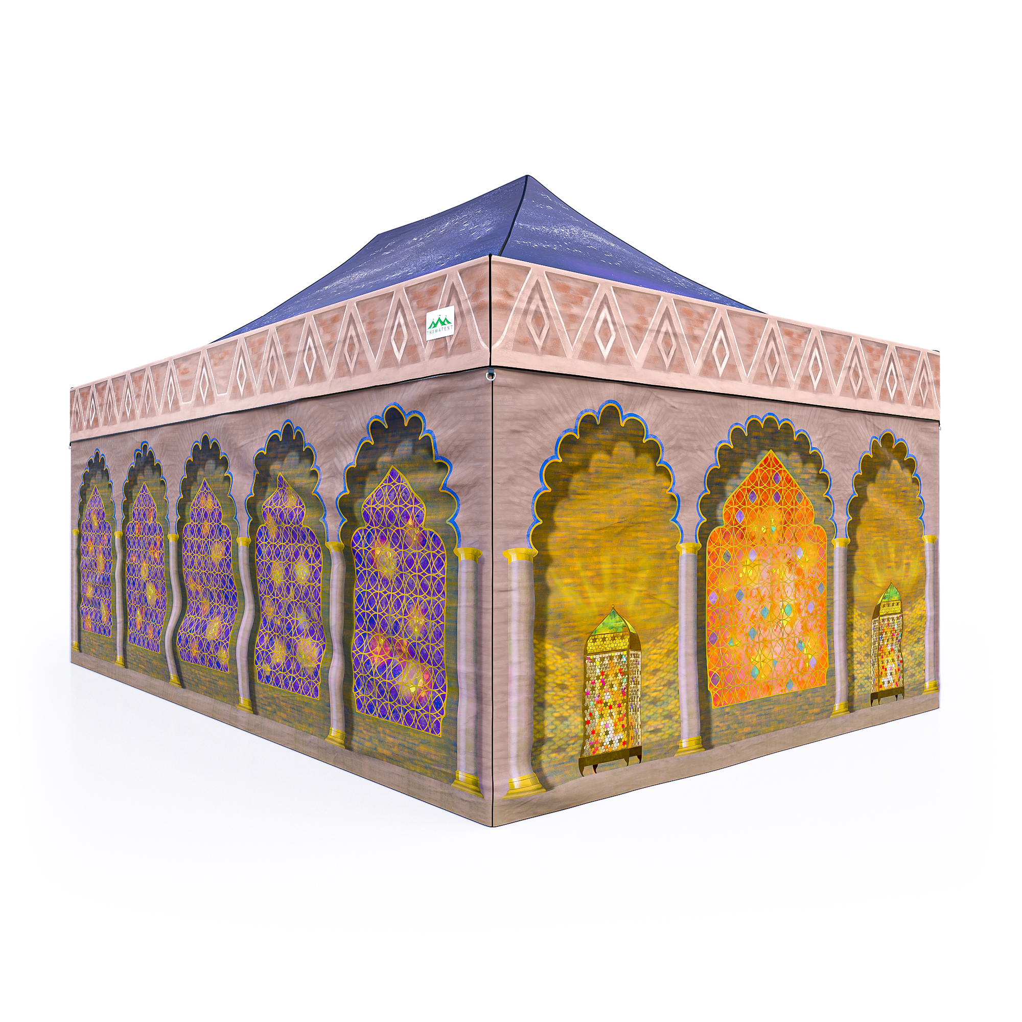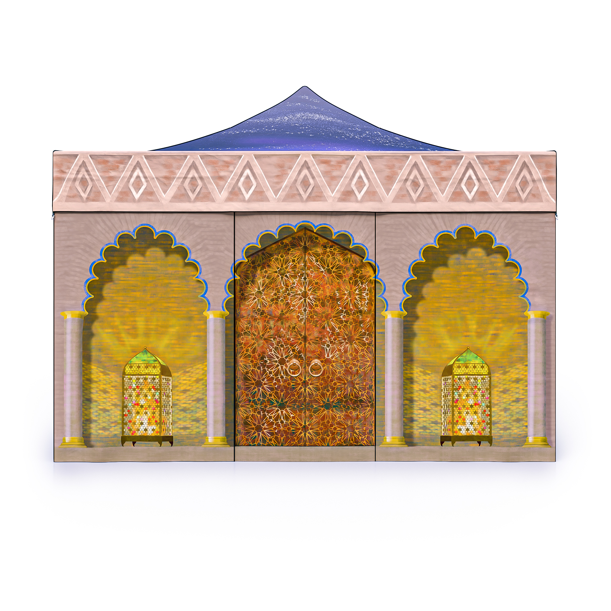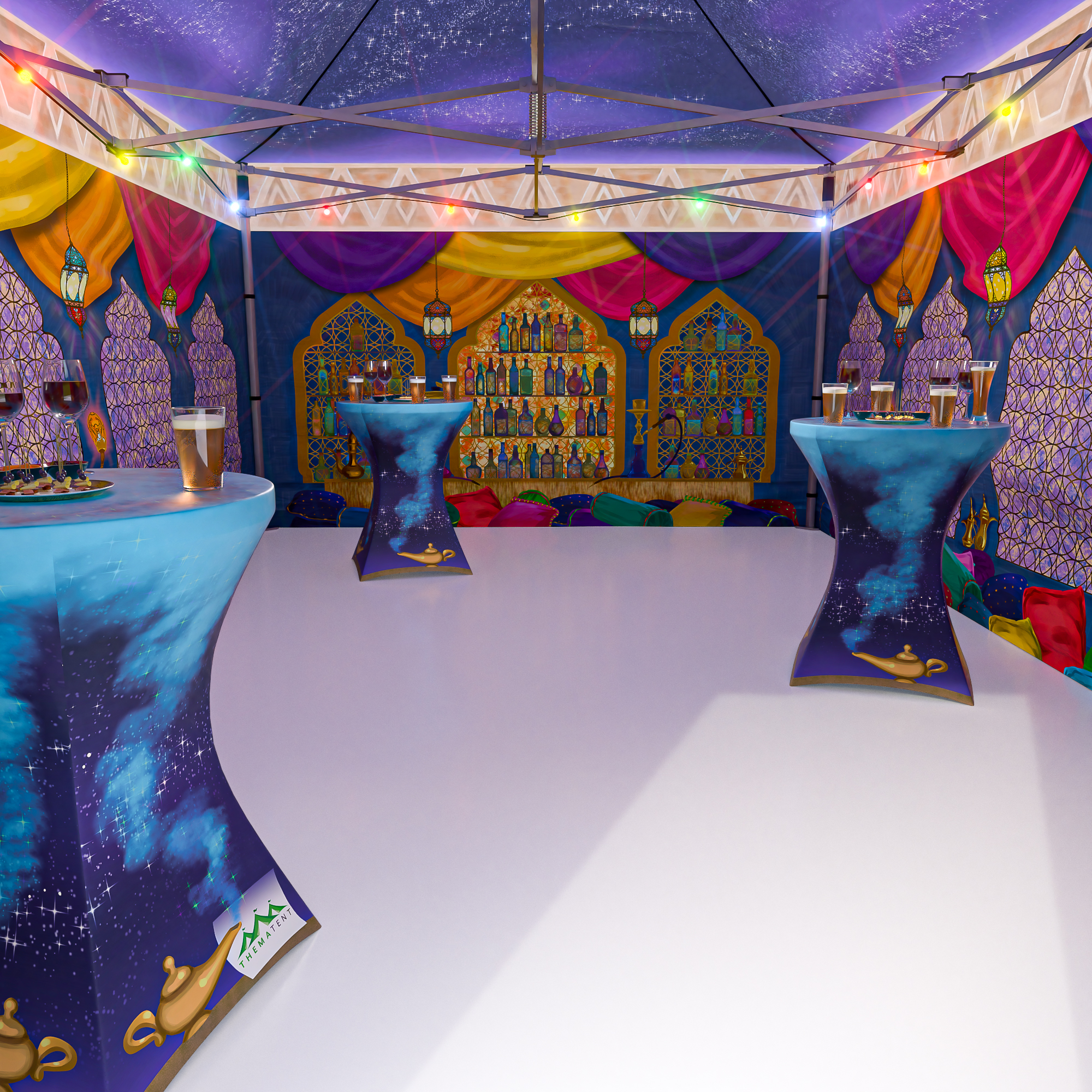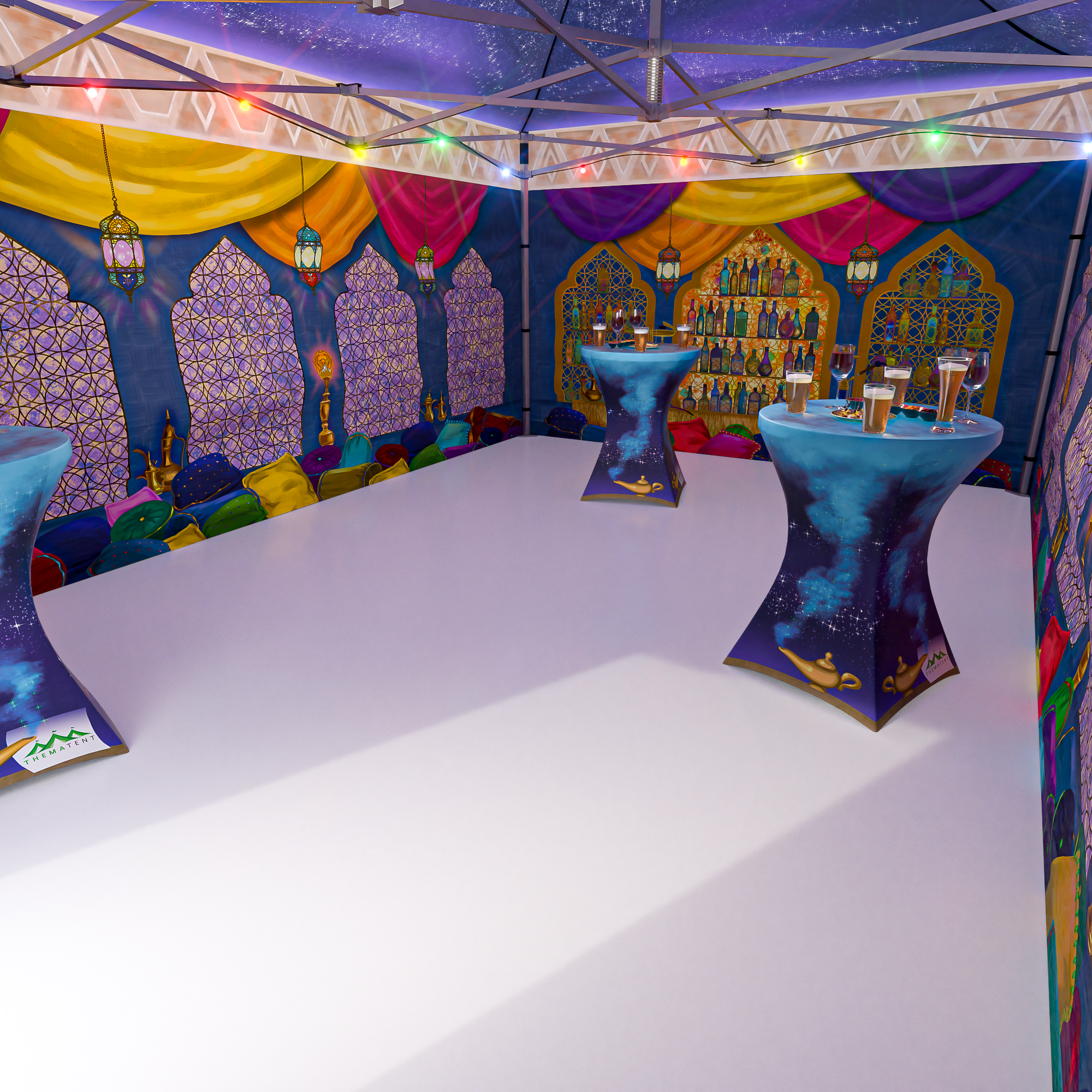 Stap binnen in een wereld van duizend-en-een-nacht met onze Arabische easy up tent. Het prachtige Arabische design, zowel van binnen als van buiten, roept direct een betoverende sfeer op. Of je nu een bruiloft, themafeest of cultureel evenement organiseert, deze tent voegt een vleugje mysterie en allure toe aan elke gelegenheid. Laat je gasten betoveren door de unieke thematische beleving en dompel ze onder in de rijke cultuur van het Oosten.