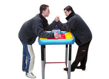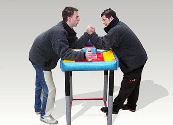 Met deze armworsteltafel kun je iedereen uitdagen om eerlijk een potje te armworstelen,
