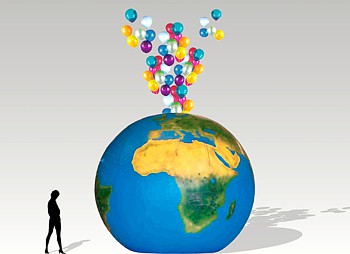 Presenteer jezelf op een originele manier!! Deze Globe legt het accent op uw aankondiging, opening of andere speciale gelegenheid! Een ruk aan het koord zorgt voor een spectaculaire release van 500 ballonnen!