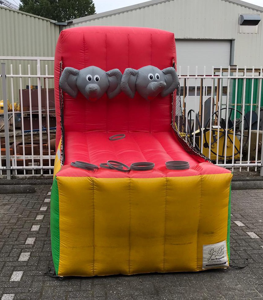 Opblaasbare spelunit met een indrukwekkende kleurrijke uitstraling voor kids. Probeer zo veel mogelijk ringen over de neus van de olifant te werpen!