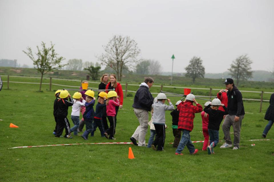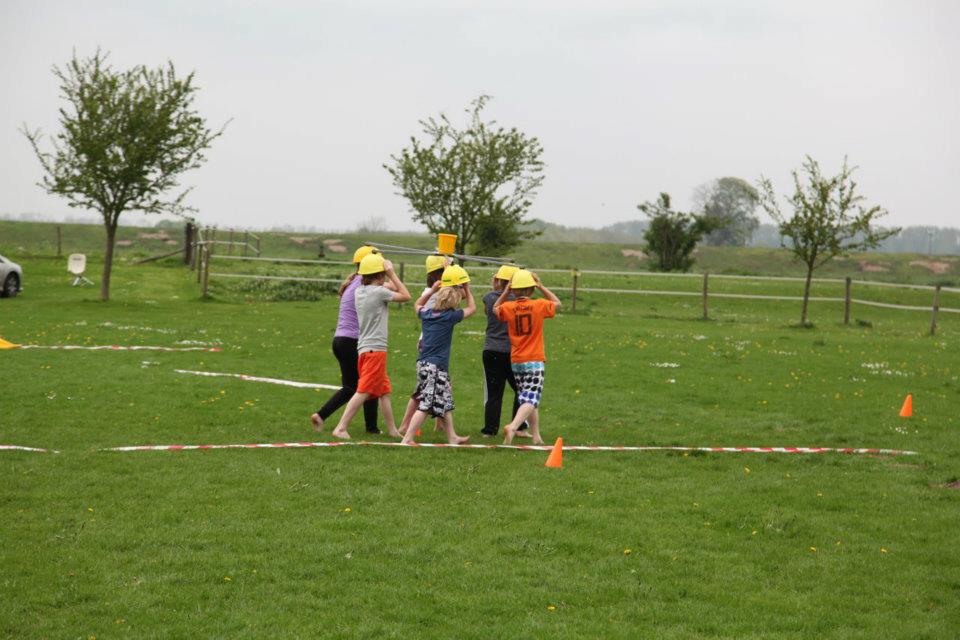 Bij dit leuke brandweerspel ben je met 6 personen verantwoordelijk voor de emmer water die boven jullie hangt. Door middel van brandweerhelmen zitten jullie aan elkaar vast. Het is dus aan jullie de taak om door een zo goed mogelijke samenwerking de emmer