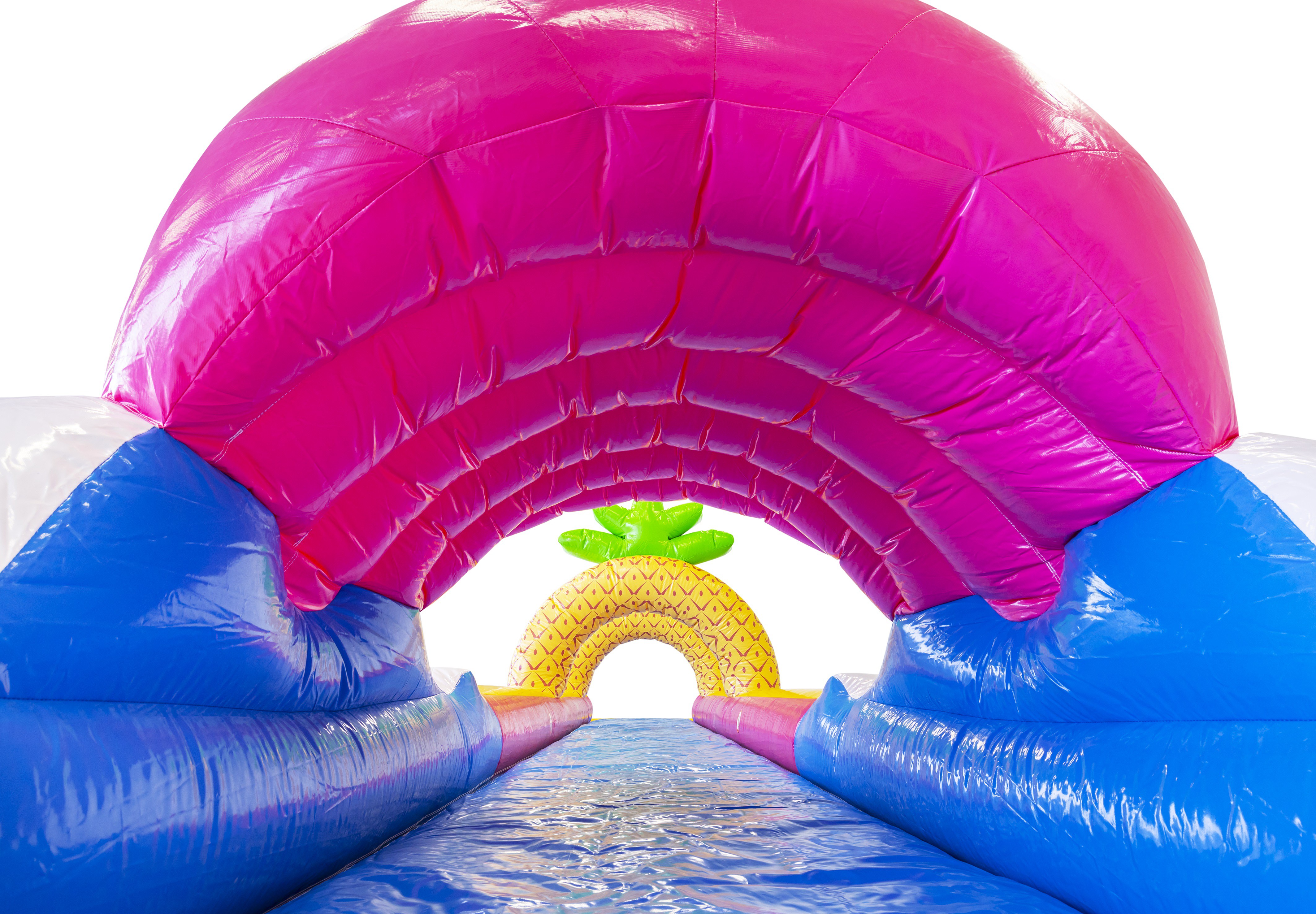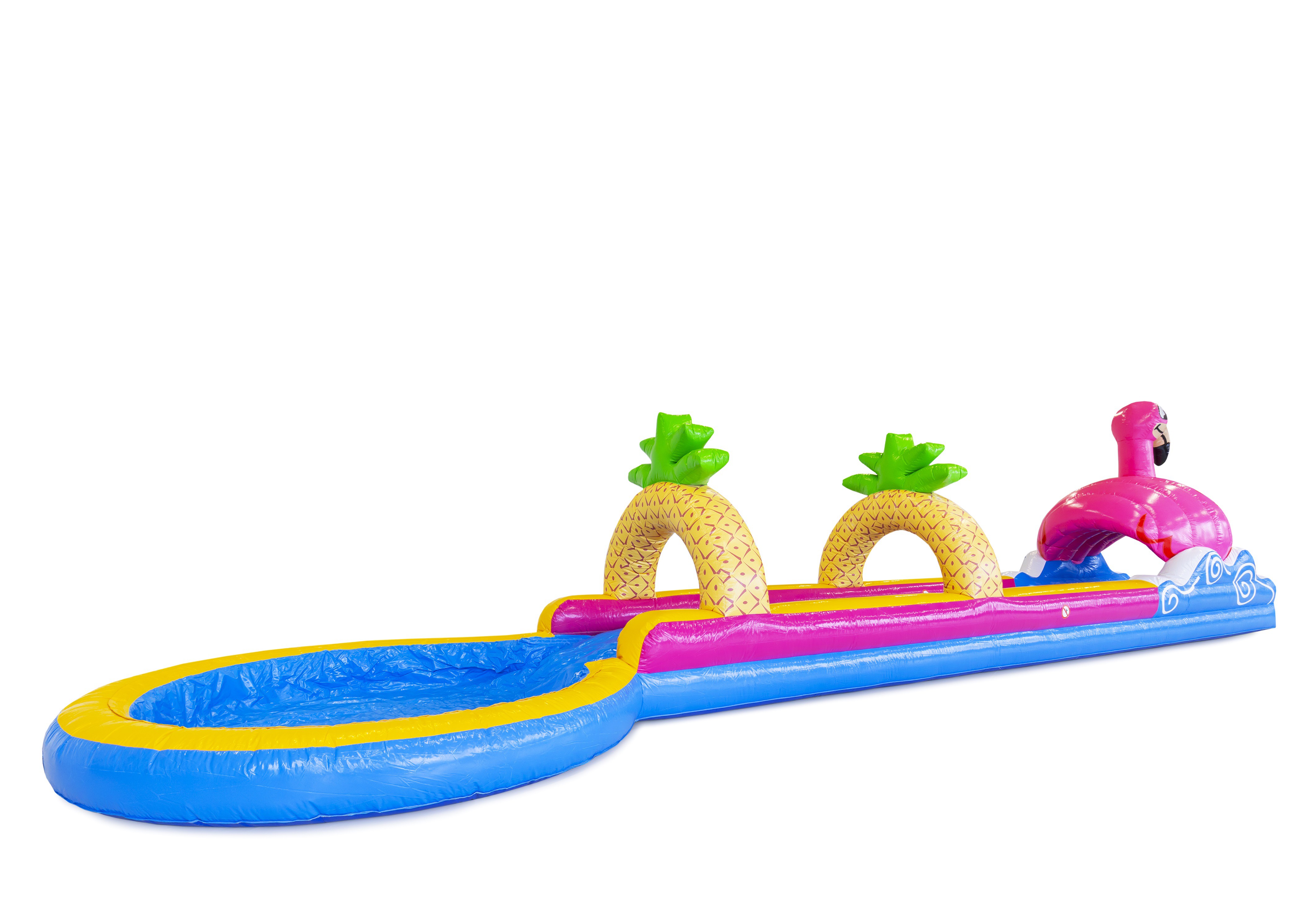 Deze tropische buikglijbaan maakt het tot een groot waterspektakel. Ideaal plezier voor jong en oud, vooral op warme dagen. Met het tropische mooie uiterlijk, springt deze buik glij attractie er op uw event echt uit. Of het nu voor gebruik thuis, op het bedrijf of bij een vereniging is, deze baan is de ideale leuke buikglijbaan.