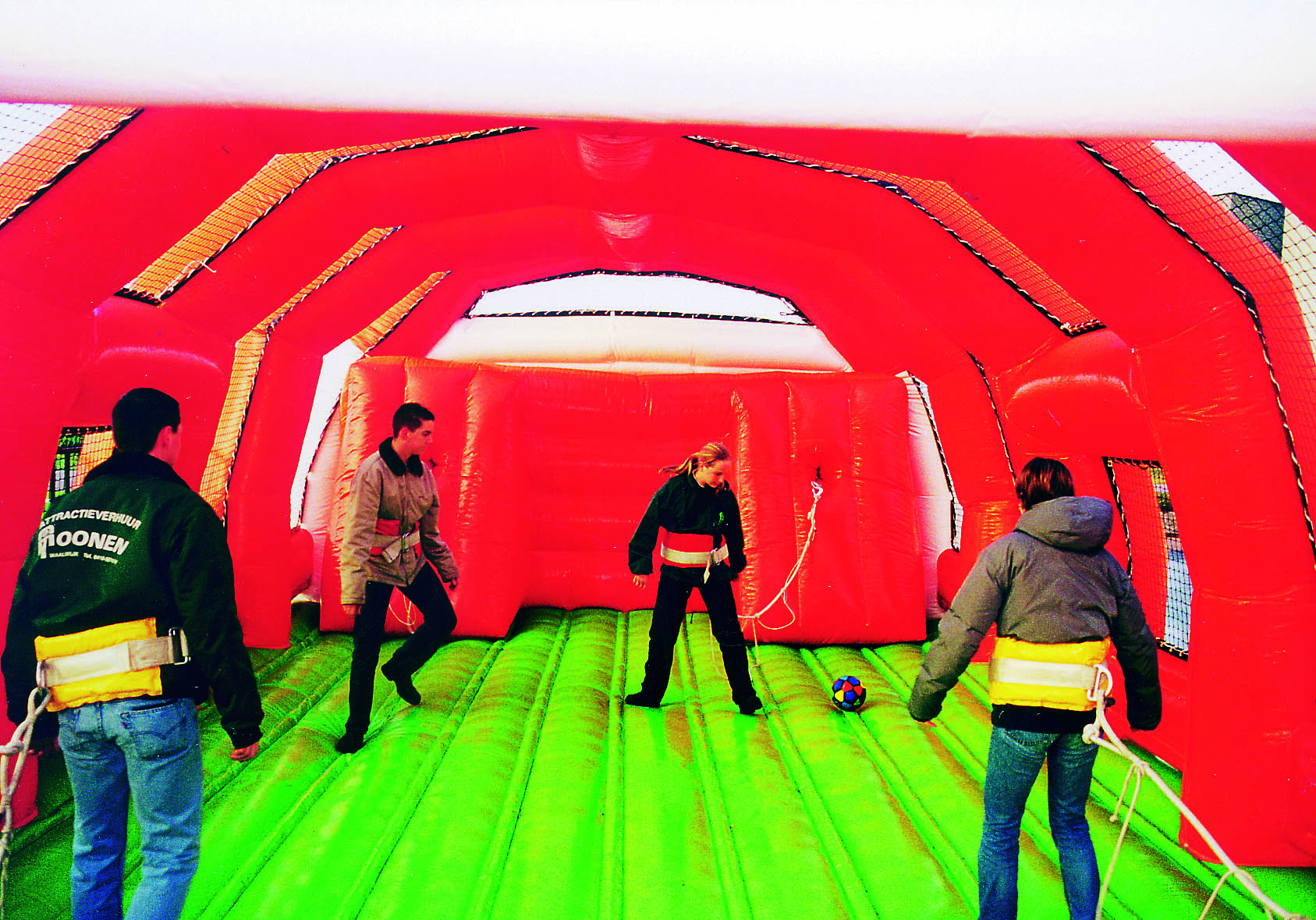 Voetballen op een springkussen terwijl u vast zit aan een touw. Een makkie denkt u? Probeer het dan nu zelf!
