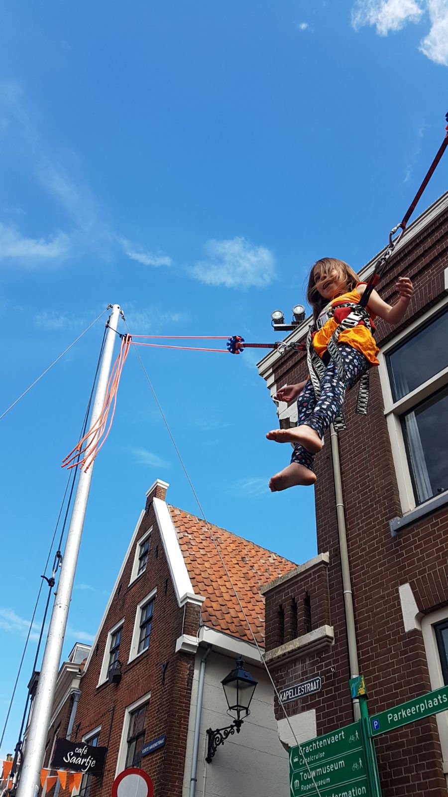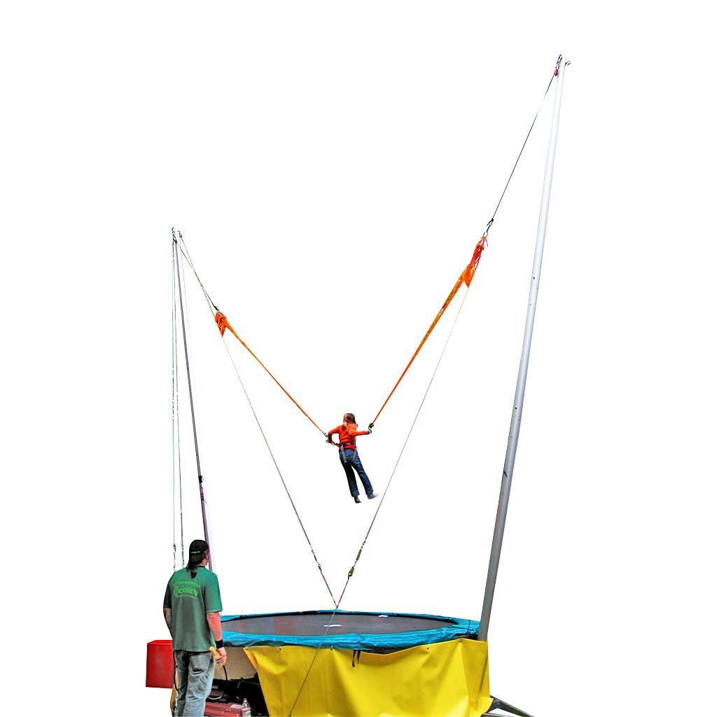 Oefen je salto’s en andere acrobatische kunsten op deze eenpersoons bungee-trampoline. De bungeekoorden zijn speciaal zo gemaakt dat je extra hoog kunt springen. Daarnaast is deze attractie toegankelijk voor zowel jong als oud. De bungeekoorden zitten namelijk vast aan speciale instapbare broekjes die in verschillende maten beschikbaar zijn. Deze mono Bungee-Trampoline is 100% gecertificeerd volgens de wettelijke Europese richtlijnen. Naast deze certificering onderhouden wij bij Attractieverhuur Moonen de bungee trampolines en andere attracties grondig, waardoor de veiligheid ten allen tijden gewaarborgd blijft. Heb je dus wel zin in een gelukssprongetje of wil je gewoon een hele spectaculaire attractie, huur dan nu deze eenpersoons Bungee-Trampoline. Attractieverhuur Moonen heeft ook bungee trampolines voor 3 en/of 4 personen. Afhalen van dit product is niet toegestaan. Enkel op verzorgbasis, verzorgd door ons enthousiast personeel is deze Bungee-Trampoline (Mono) te huur.