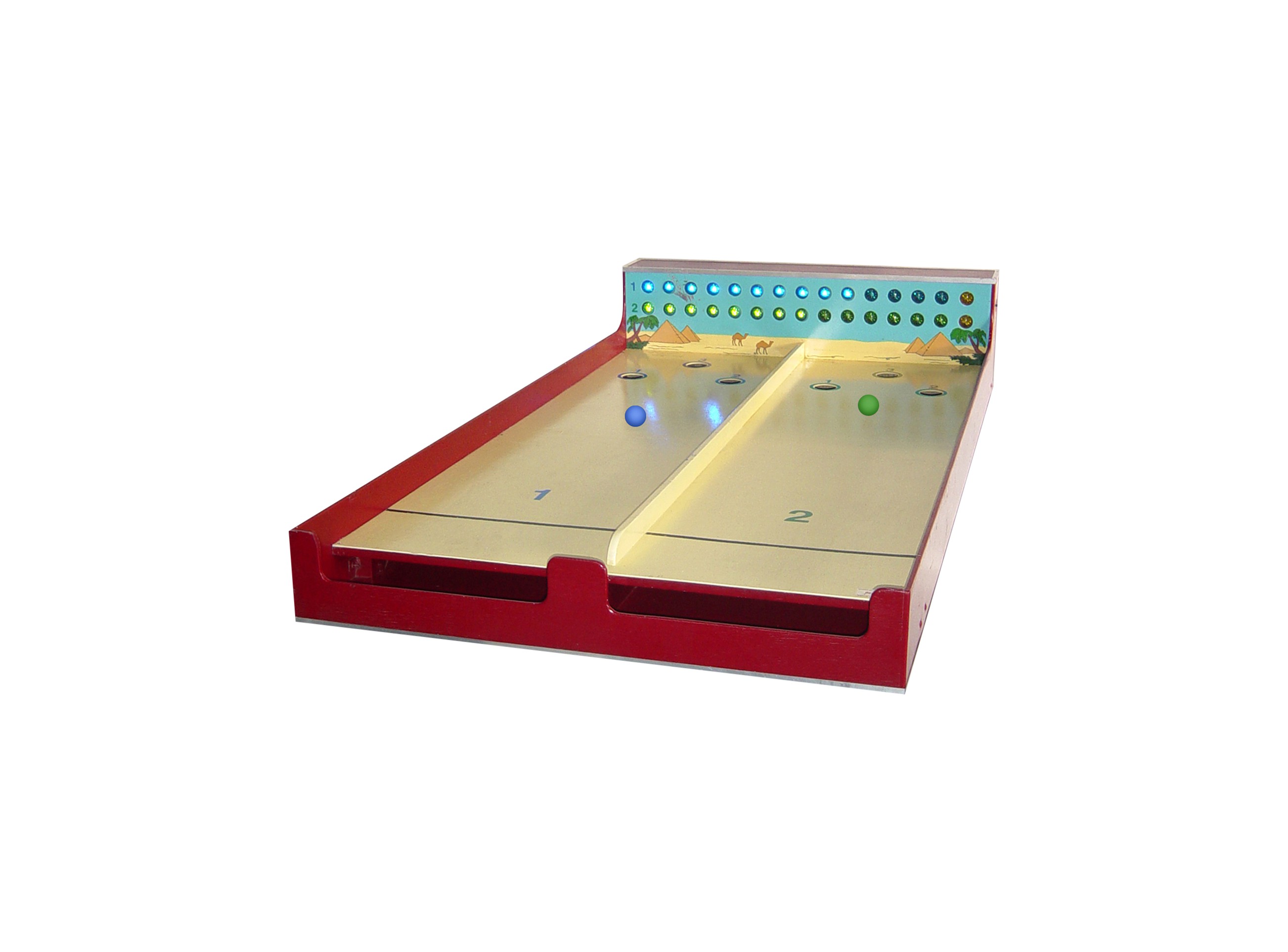 Elke speler rolt ballen naar de doelgaten om de kameel telkens 1, 2 of 3 stappen voorwaarts te laten rennen en waarbij het display toont hoever je bent. Het overbekende kermisspel, nu in een compacte uitvoering!