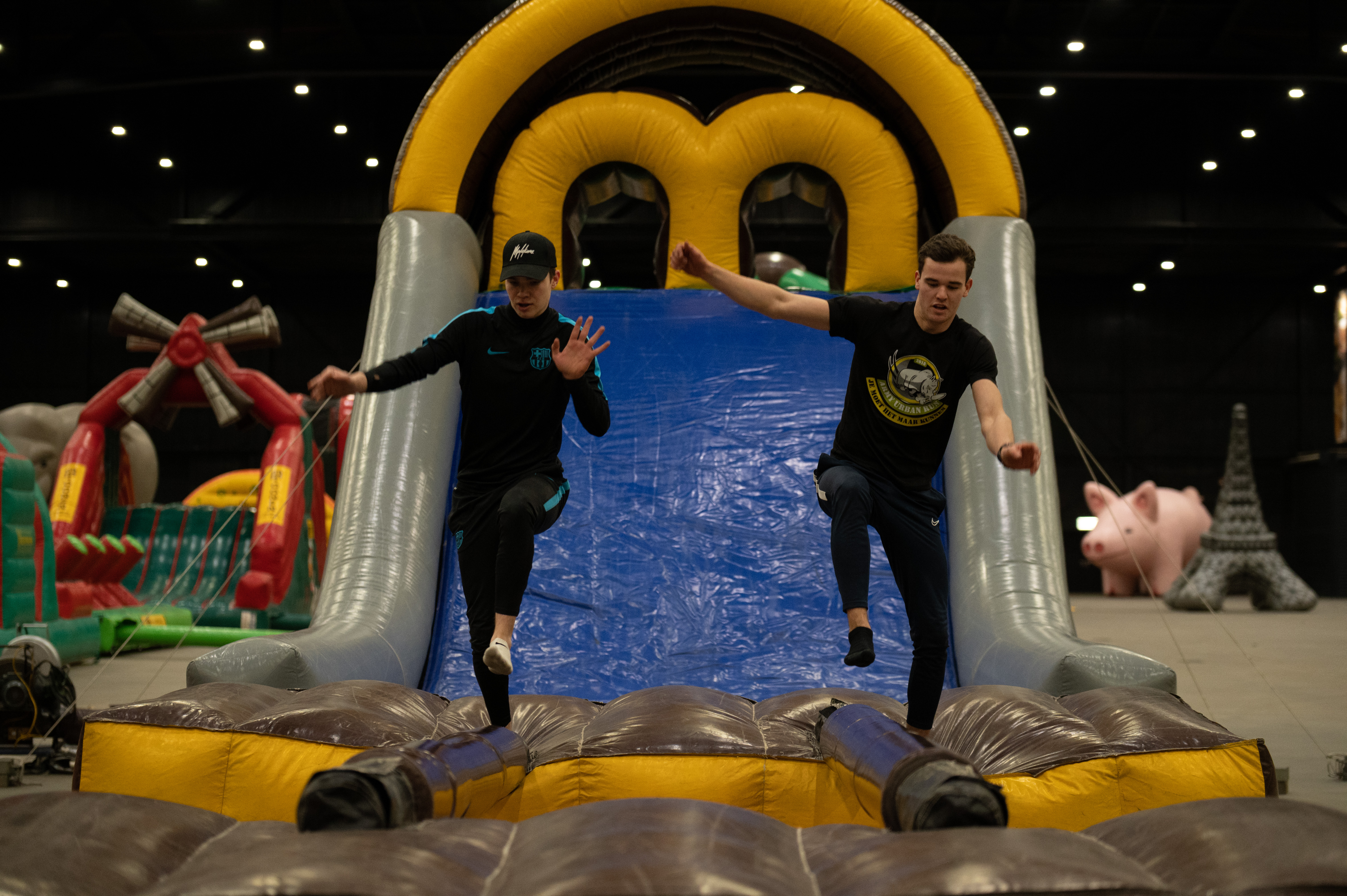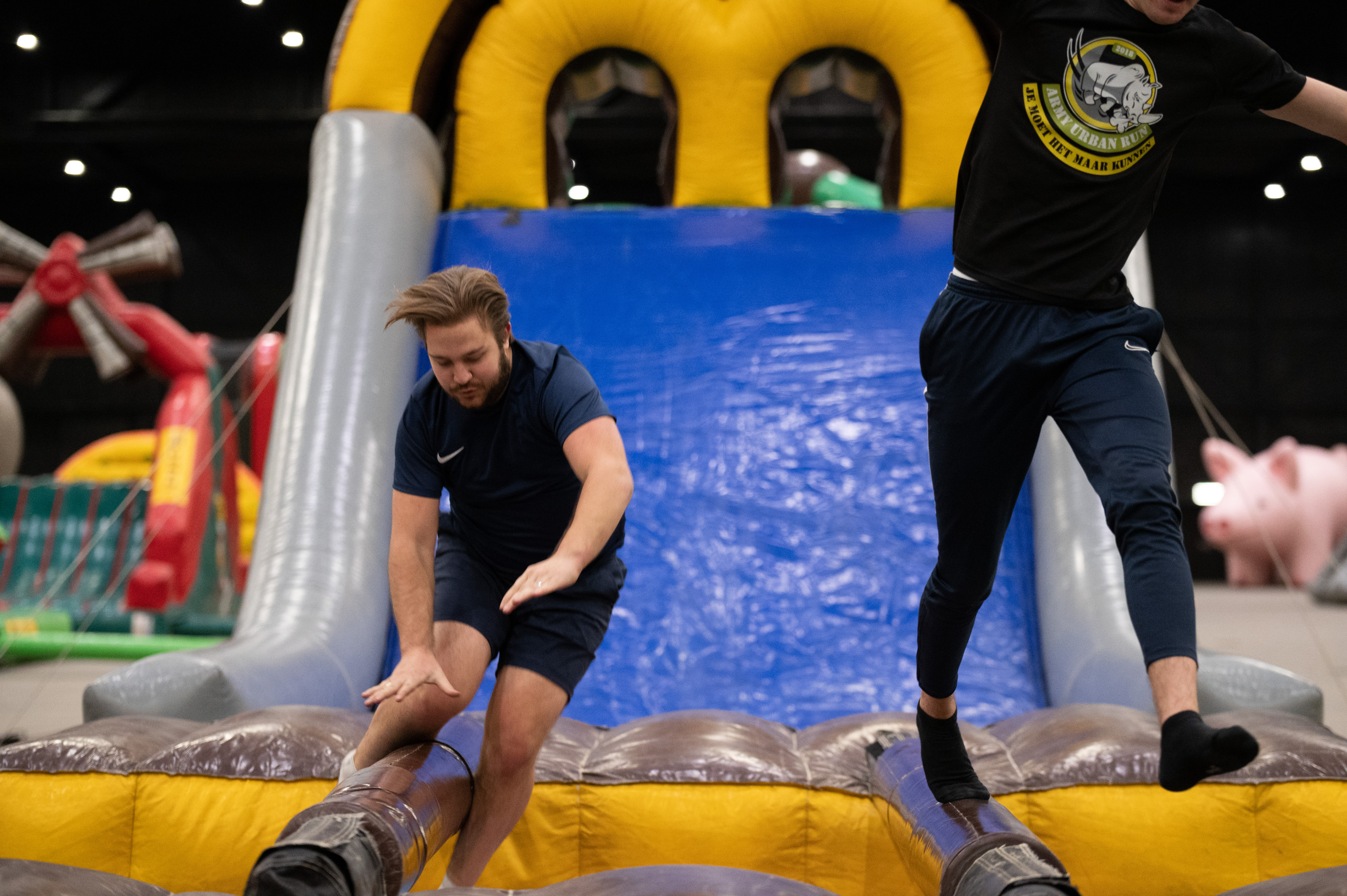 Klim op het kussen om bij de evenwichtsbalken te komen. Probeer meterslang je evenwicht te houden om de overkant te bereiken. Lukt het niet en val je naar beneden? Geen zorgen! Je word zachtjes opgevangen in een ballenbad. Het feit dat er 2 evenwichtsbalken naast elkaar zijn biedt de mogelijkheid om een wedstrijdelement aan de attractie toe te voegen. Deze attractie is op zichzelf erg leuk en prima te gebruiken. Daarnaast kan het ook als obstakel toegevoegd worden bij bijvoorbeeld een zeskamp.