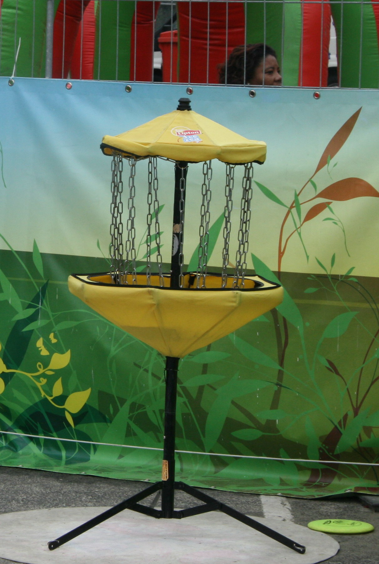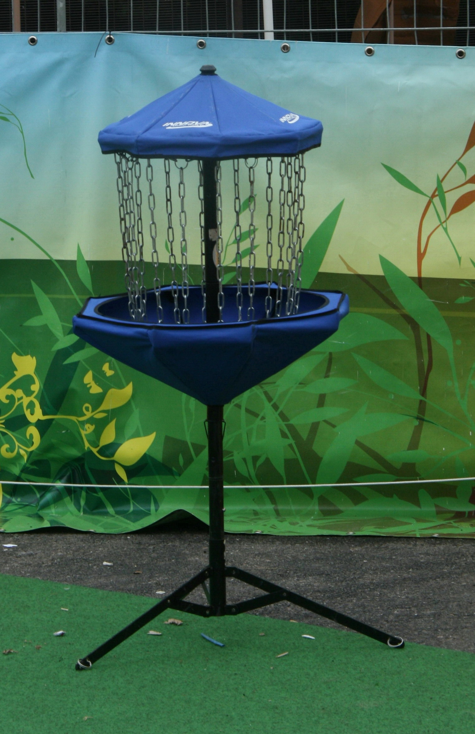Werp de discs op de juiste manier en probeer ze in de ´kooi´ te werpen.