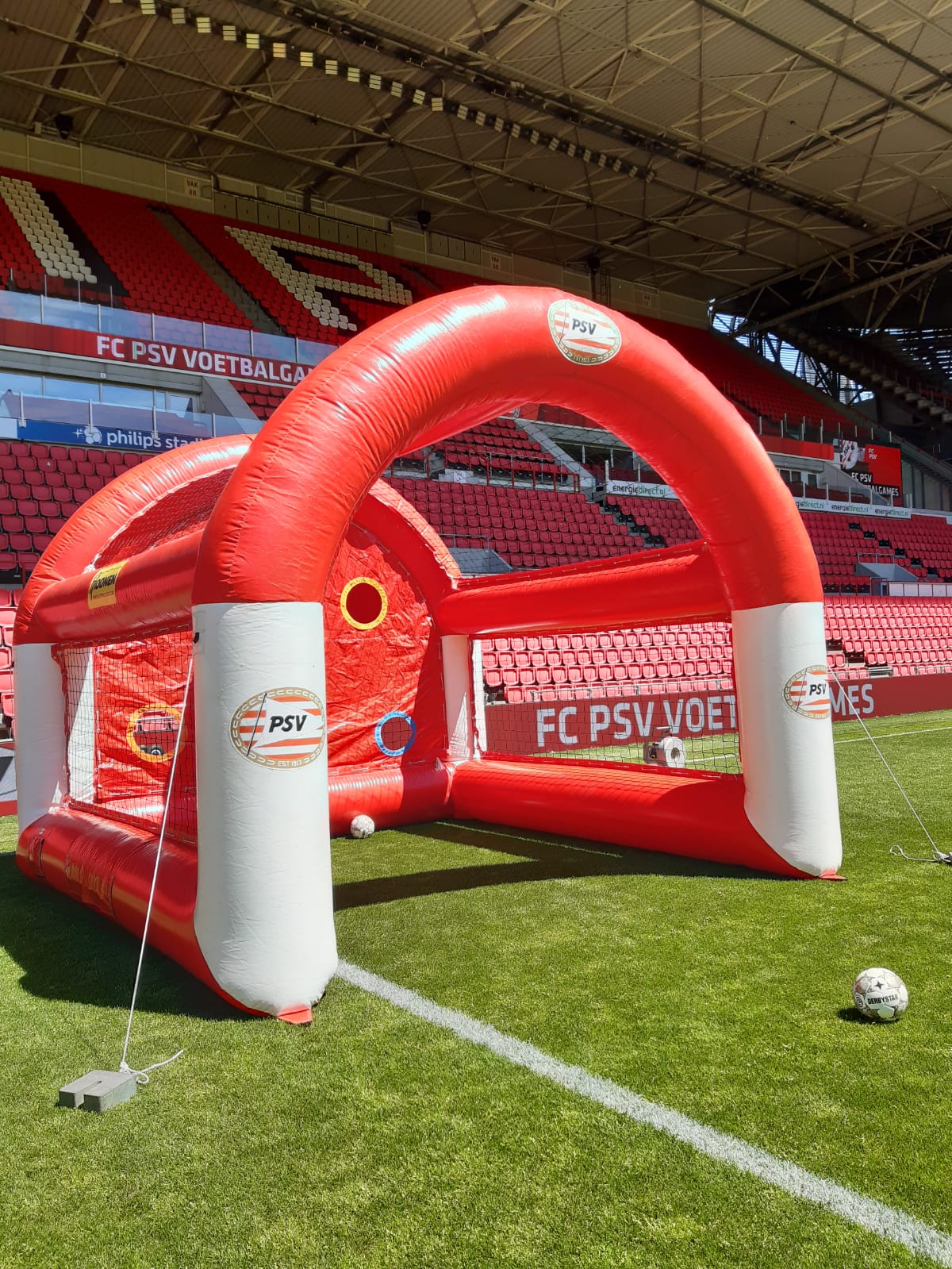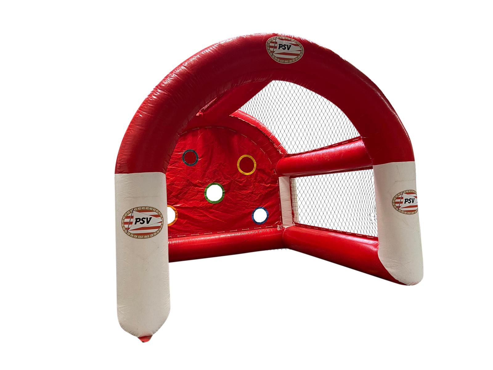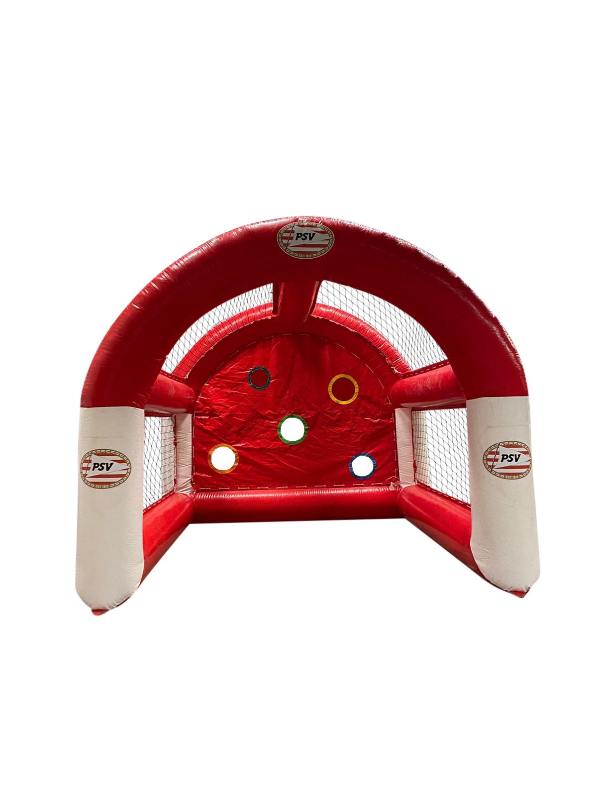 De ideale voetbalattractie voor iedere PSV supporter. Het luchtkussen is namelijk uitgevoerd in de clubkleuren van PSV en ook het logo is erop afgebeeld. Het doel van het spel is om de bal in de gaten te schieten. Probeer zo veel mogelijk punten te scoren!