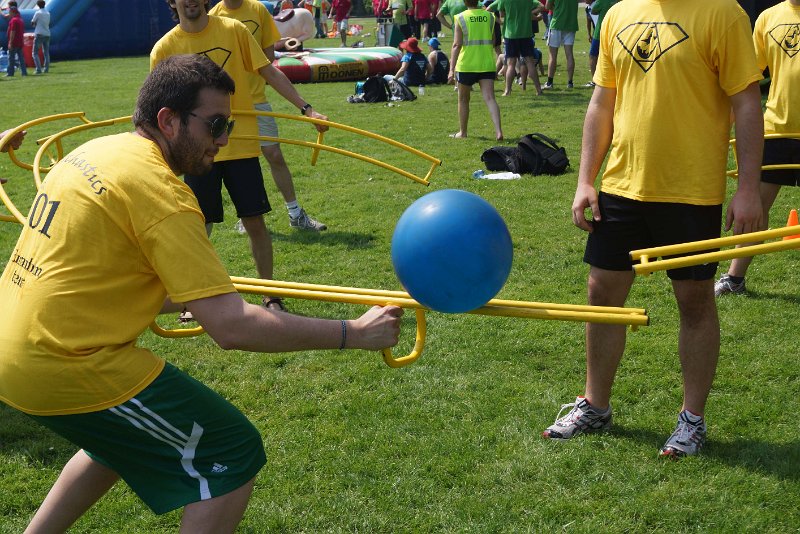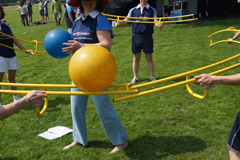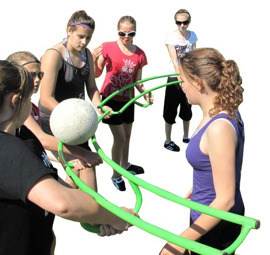 Een bal doorgeven kan heel makkelijk zijn, maar is dat ook zo met deze doorgeefstaven? De bedoeling van dit spel is dat iedere deelnemer een doorgeefstaaf pakt. Door middel van goede samenwerking proberen de deelnemers de bal rondjes te laten draaien.