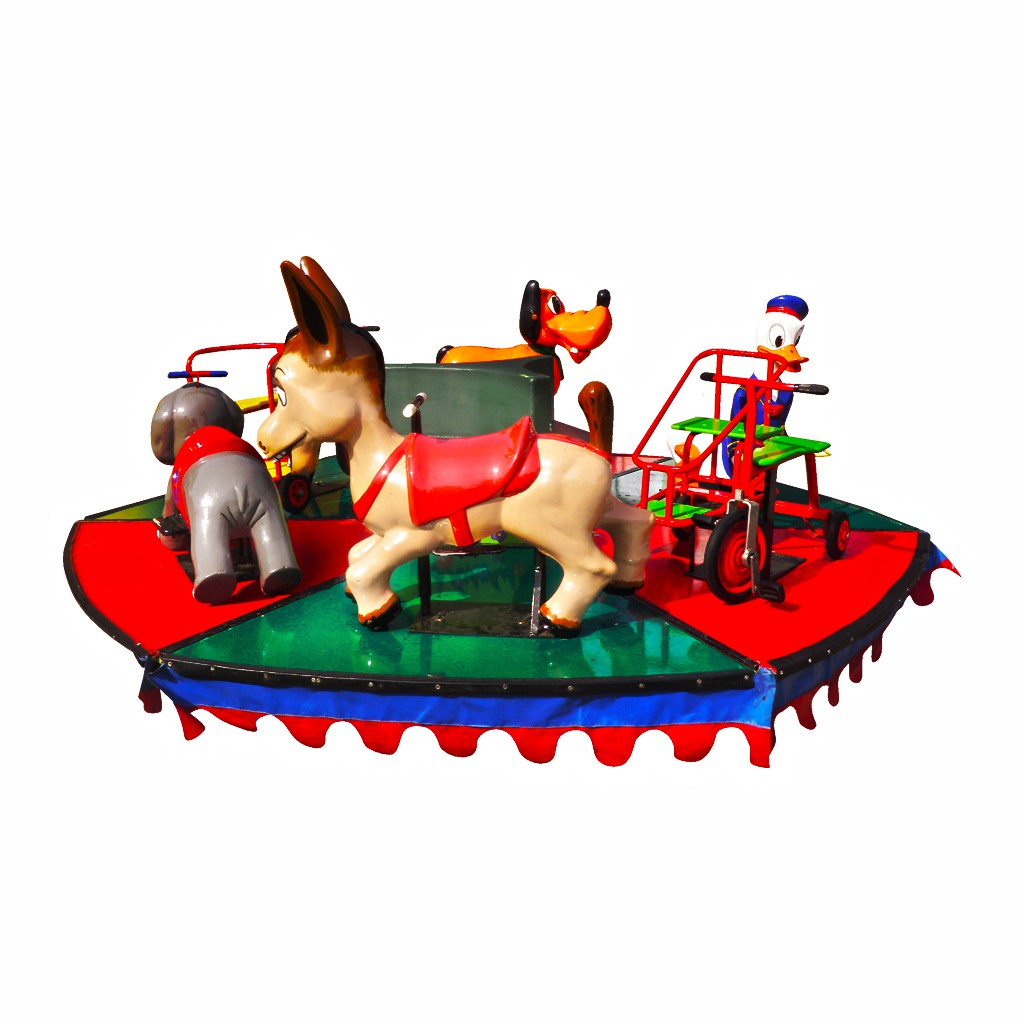 Deze draaimolen is geschikt voor de allerkleinsten (tot 8 jaar) en beschikt over bekende personages zoals onder anderen Donald Duck en Loebas (de hond van Donald Duck). Kinderen kunnen op deze draaimolen wel urenlang ronddraaien. Deze prachtige draaimolen is te bedienen met een gebruiksvriendelijk besturingsunit waarmee de attractie gestart en gestopt kan worden. De attractie is gebruiksvriendelijk en kwalitatief goed afgewerkt. Daarnaast is de draaimolen ook erg veilig. Deze kinderdraaimolen is volledig gecertificeerd volgens officiële Europese richtlijnen en wordt ook door ons grondig bijgehouden en gecontroleerd. Met de draaimolen ‘’allerlei (tot 8 jaar)’’ haal je een unieke attractie naar uw locatie. De kinderen zullen de rondjes en personages helemaal prachtig vinden en succes is gegarandeerd. Tijdens het draaien is er voor de ouders ook de mogelijkheid tot het maken van foto’s.