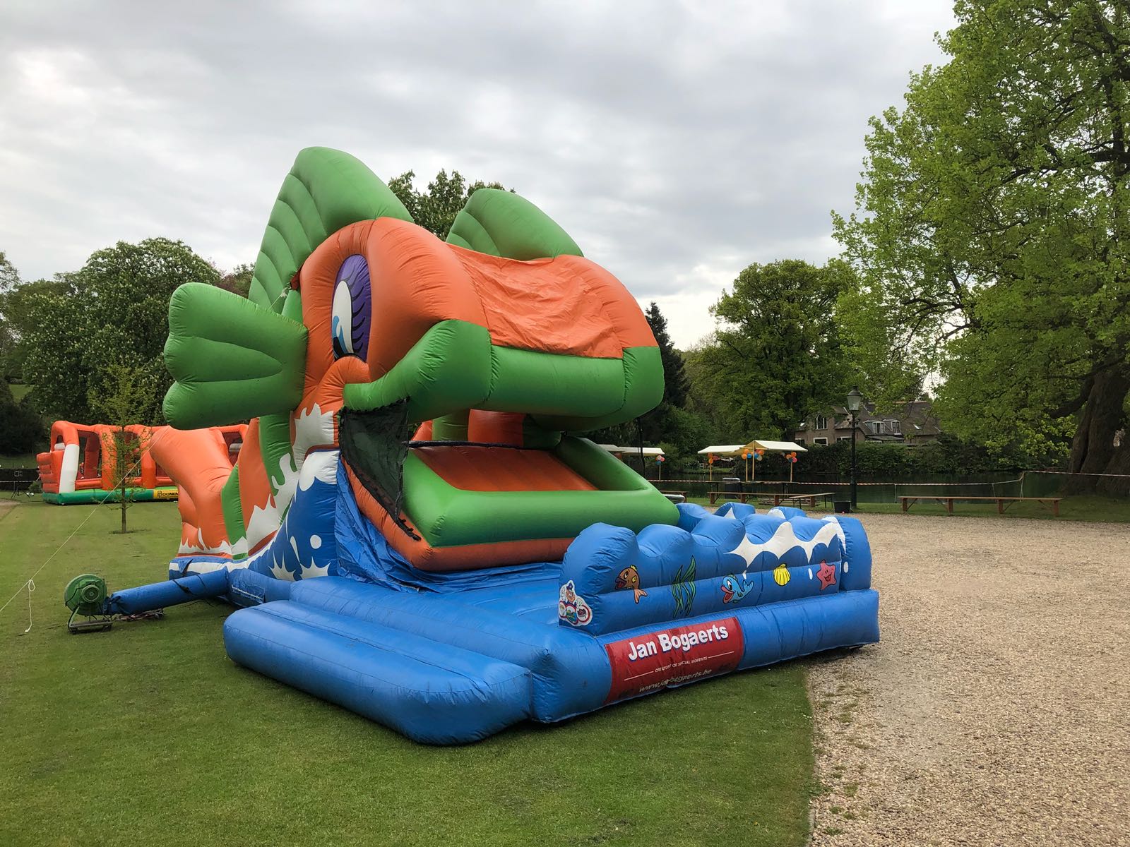 Deze vriendelijke reus biedt urenlang speelplezier voor jong en oud. Zijn bek gaat continu open en dicht. Spring er zo snel mogelijk in als de bek open is. Deze zal vervolgens sluiten. Kruip door en glij via de achterkant zo weer naar buiten! Deze attractie is geschikt voor veel verschillende evenementen en brengt een zomers sfeertje met zich mee.