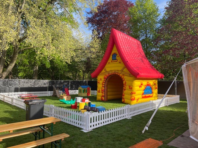 Prachtige Kids Corner, voorzien van softplayfiguren en rondom voorzien van hekjes. Meteen een eye-catcher op uw event dankzij deze indrukwekkende inflatable!