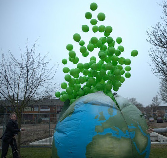 Deze gigantische wereldbol zal zeker opvallen en met de ballonnen die er via de bovenkant, wanneer u dat wilt, uitkomen is het helemaal compleet. Deze globe is exclusief ballonnen verkrijgbaar.