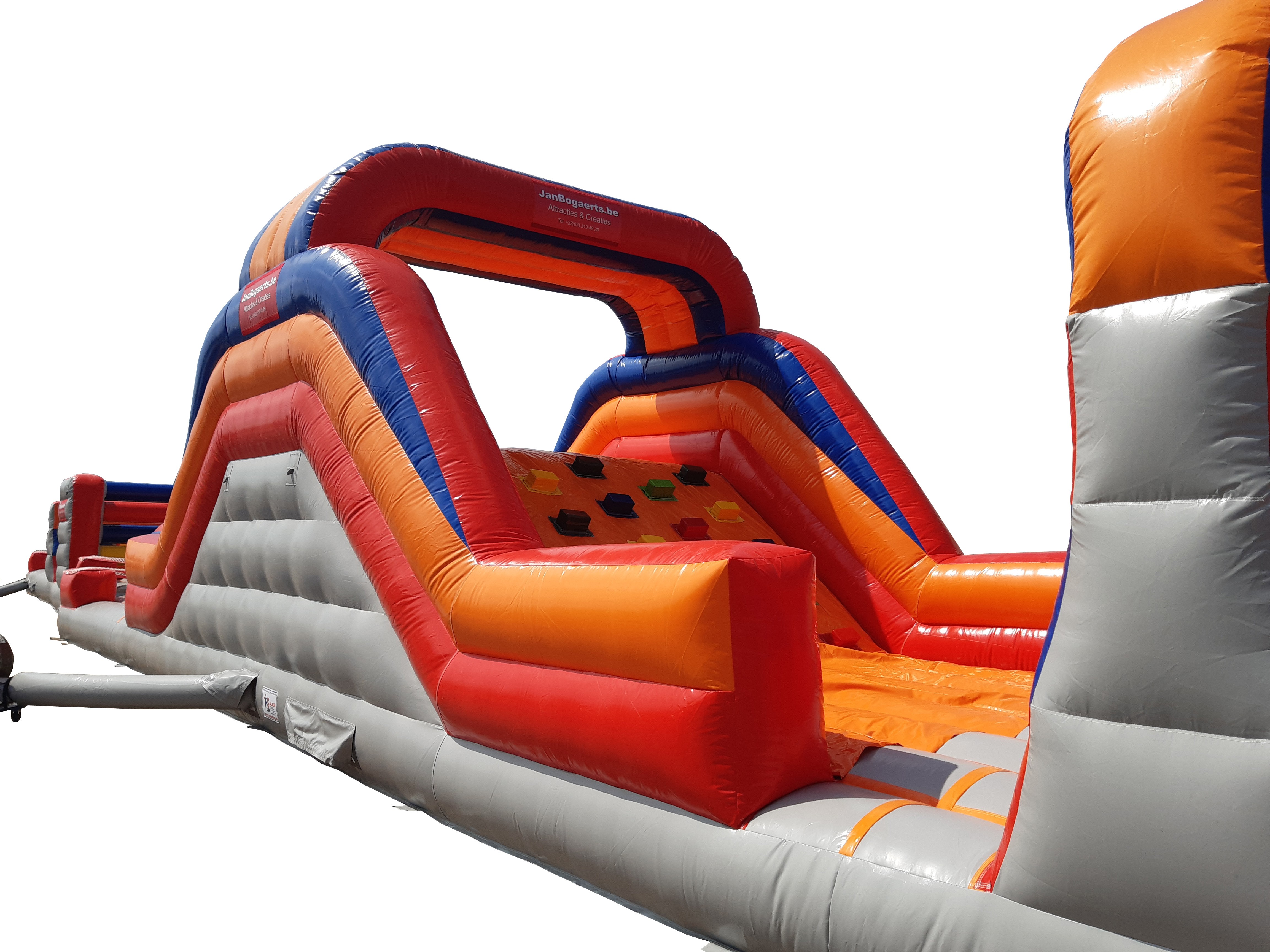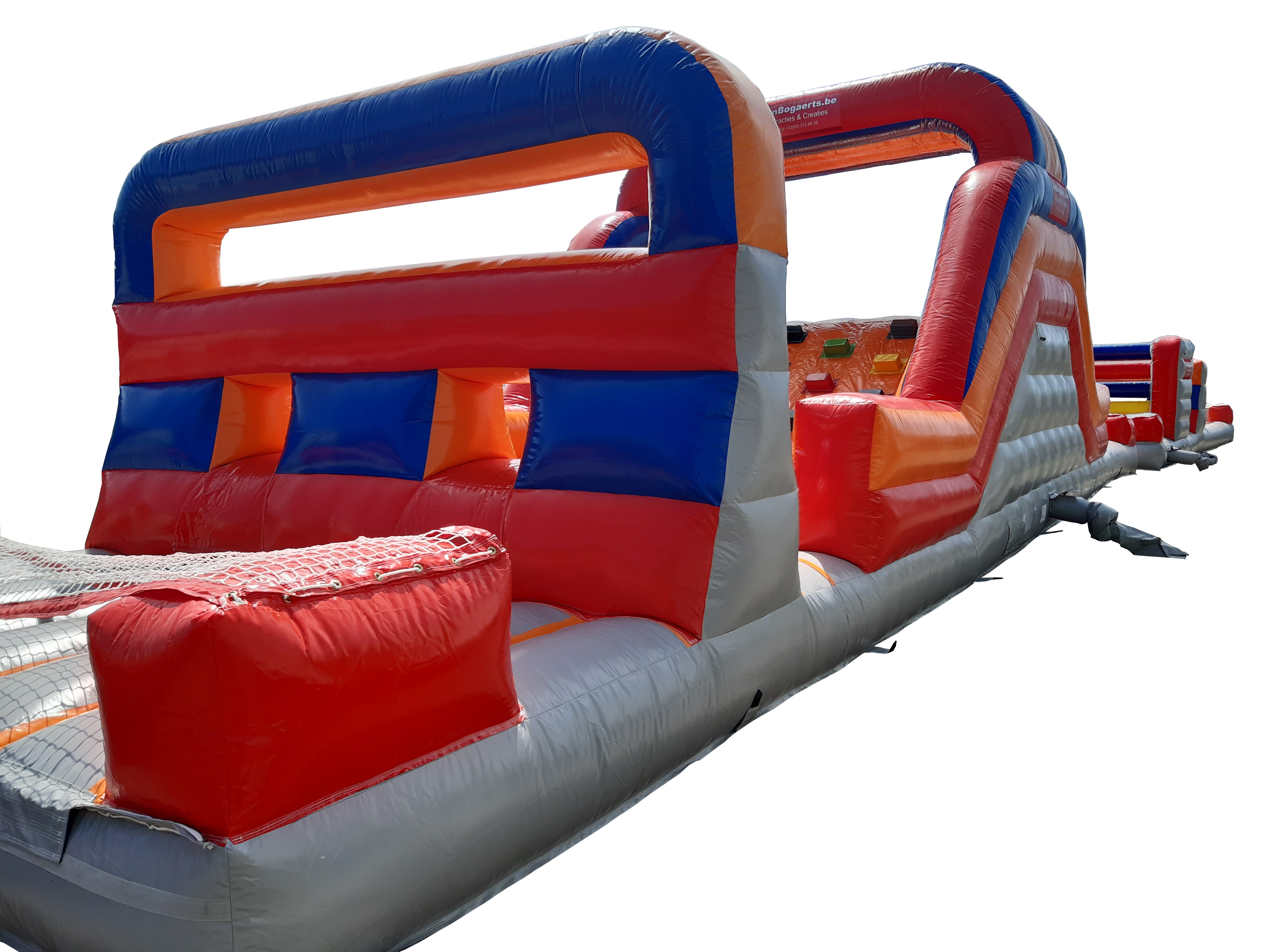 Deze extra lange hindernisbaan zorgt voor een groot spektakel en een fanatieke competitie.