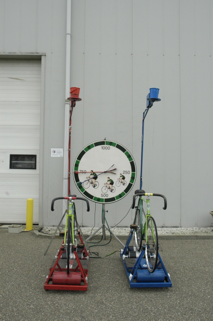Zorg dat je als eerste over de finish komt! Anders zul je een plens water die boven je hangt over je heen krijgen. Natuurlijk kan er ook iets anders in dan water.