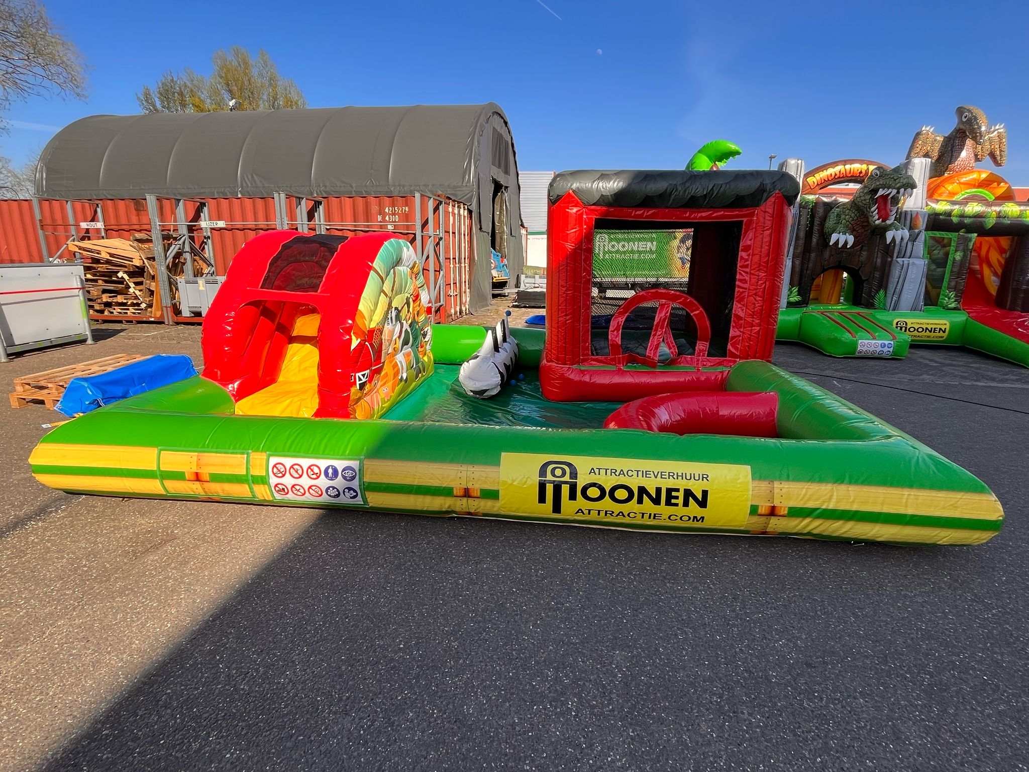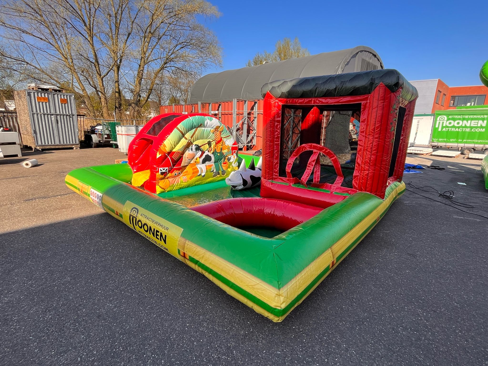 De Kidspark Boerderij combineert maar liefst vier leuke attracties in één compacte speelzone. Kinderen kunnen springen op het mini springkussen, hun vaardigheden testen met het blaasballenspel, zich onderdompelen in het vrolijke ballenbad, en van de opblaasbare glijbaan roetsjen. Een feest van beweging, lachen en ontdekken!