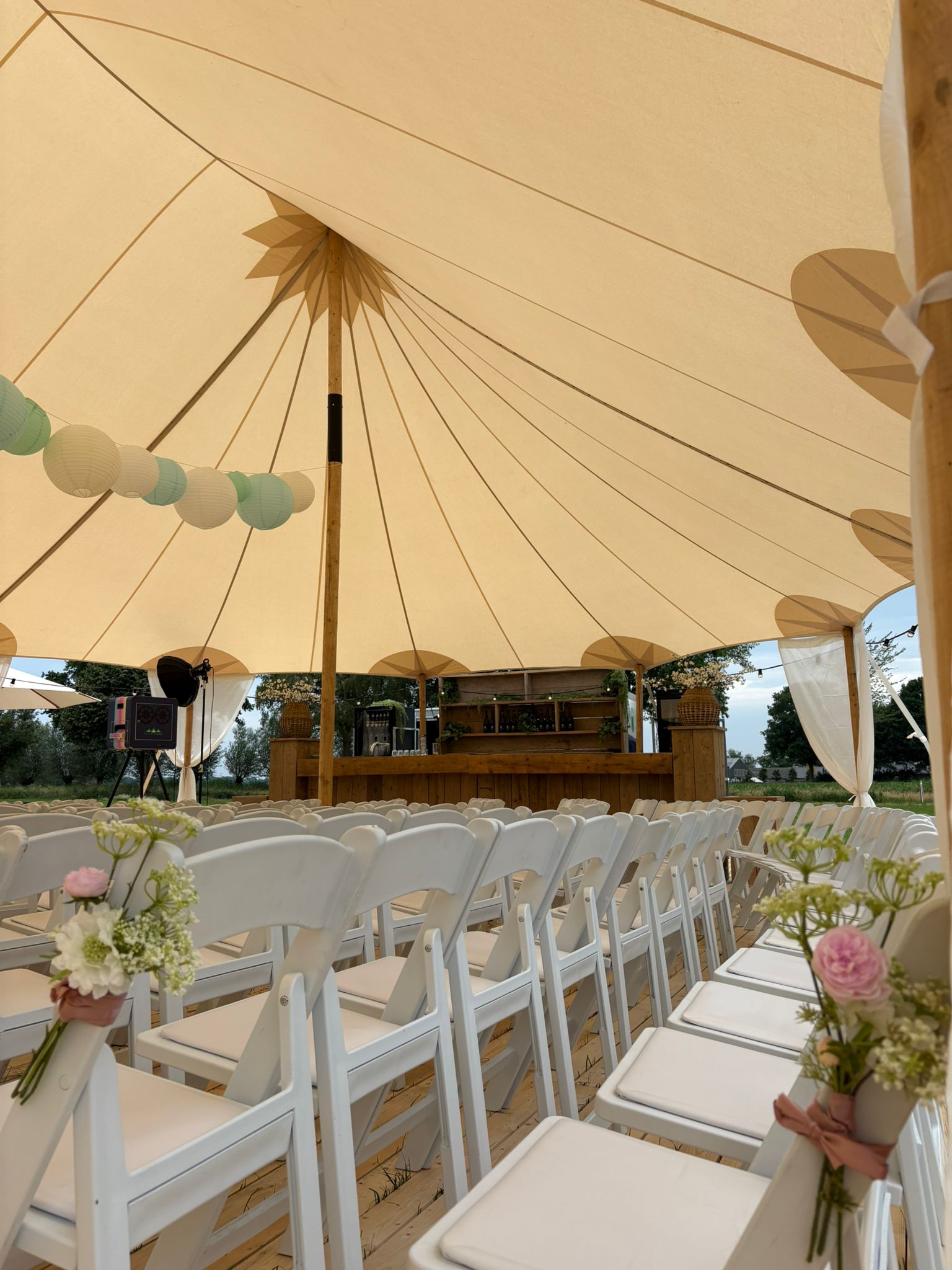 De klapstoel wit (wedding chair) is een stijlvolle en functionele keuze voor bruiloften, recepties en ceremonies. Met zijn elegante uitstraling, comfortabele zit en snelle opstelling voegt hij moeiteloos klasse toe aan elke feestelijke gelegenheid.