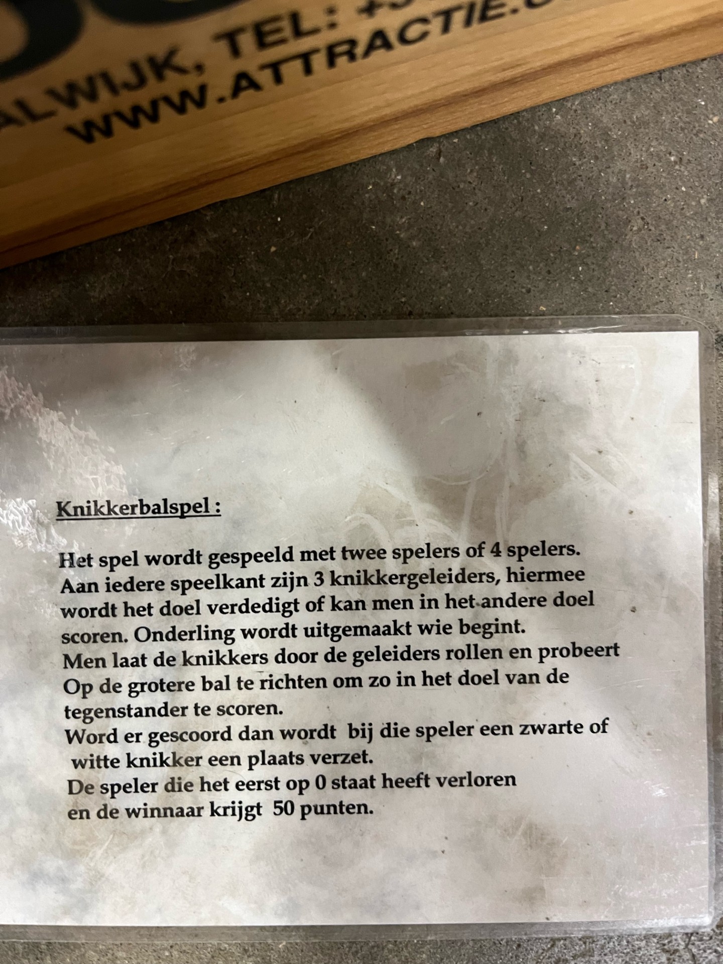 Knikkerbalspel L1,05 x B 0,76 x H 0,22 m.