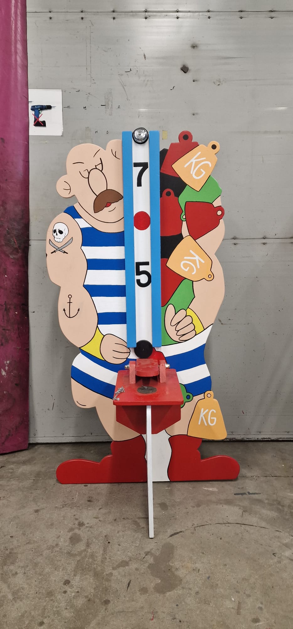 Sla met de grote hamer op de knop en zorg ervoor dat de bal zo hoog mogelijk in de balk komt.