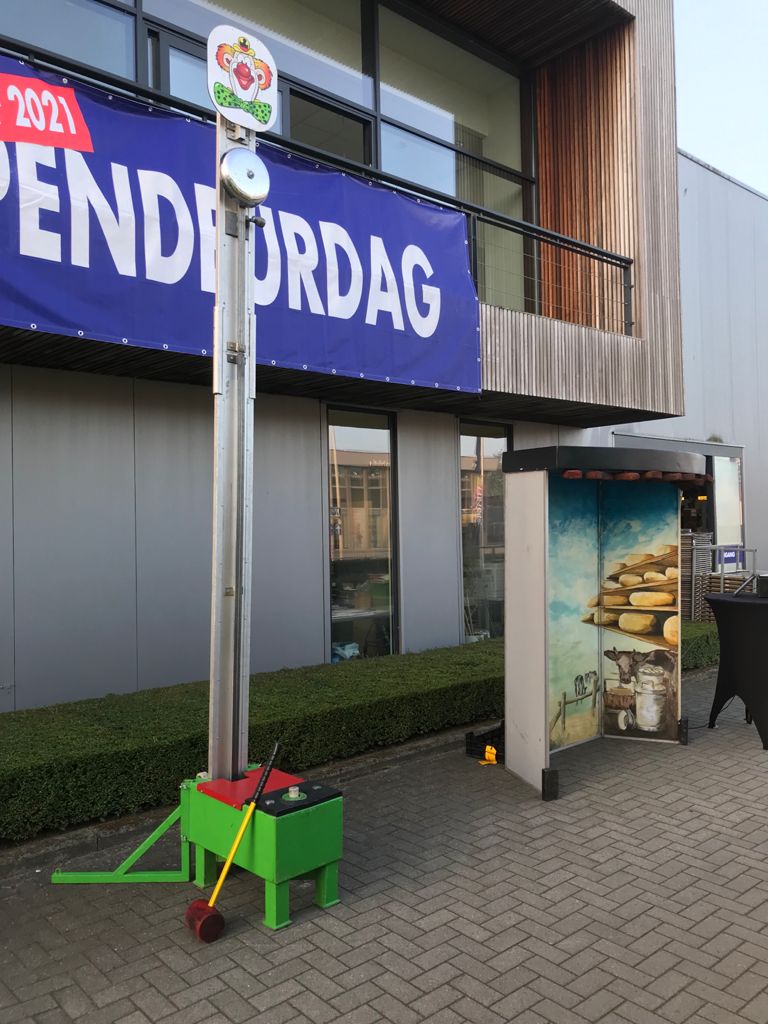 Ben jij die krachtpatser die aan iedereen wil laten zien hoe sterk je bent? Dan is de "Kop van Jut met bel" een perfecte optie voor jou evenement. De kop van jut is makkelijk en snel te monteren doormiddel van de bijgeleverde handleiding. Je hebt dus binnen een oogwenk een echte eyecatcher waar veel publiek op af zal komen. De kop van jut zelf werkt als volgt. Je hebt een grote hamer in je hand waarmee je zo hard mogelijk op het witte rondje dat in de kast zit probeert te slaan. Wanneer het witte rondje naar beneden wordt geslagen gaat er een groen blokje de lucht in. Hoe harder er wordt geslagen hoe hoger het blokje de lucht in vliegt. Als je hard genoeg slaat komt het blokje tegen de bel aan. Doordat het lange gedeelte van de kop van jut uit 3 delen bestaat is er ook de mogelijkheid om dit in te korten. Dus heb je binnenkort een evenement waarbij de krachten geshowd moeten worden? Huur dan gegarandeerd de kop van jut voor veel speelgenot.