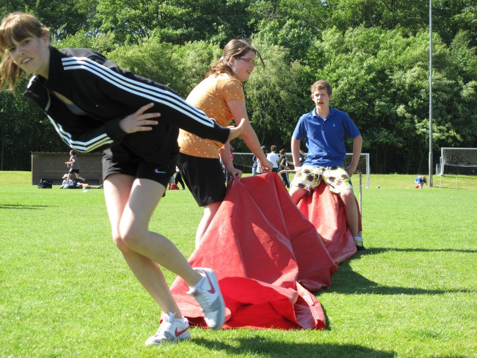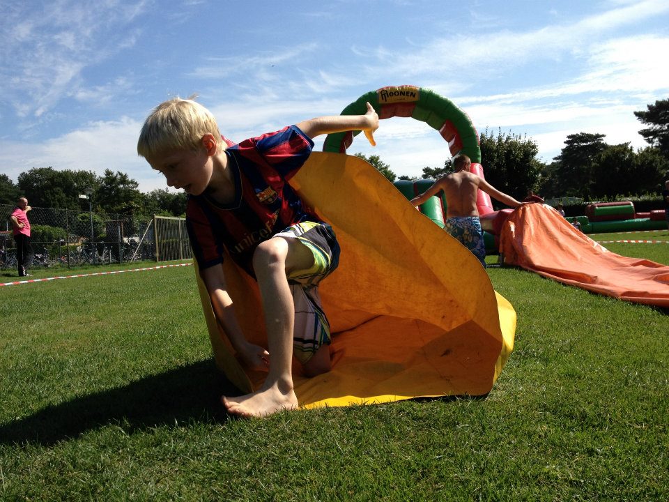 Kruip zo snel mogelijk door de slang. Wie is het snelste?