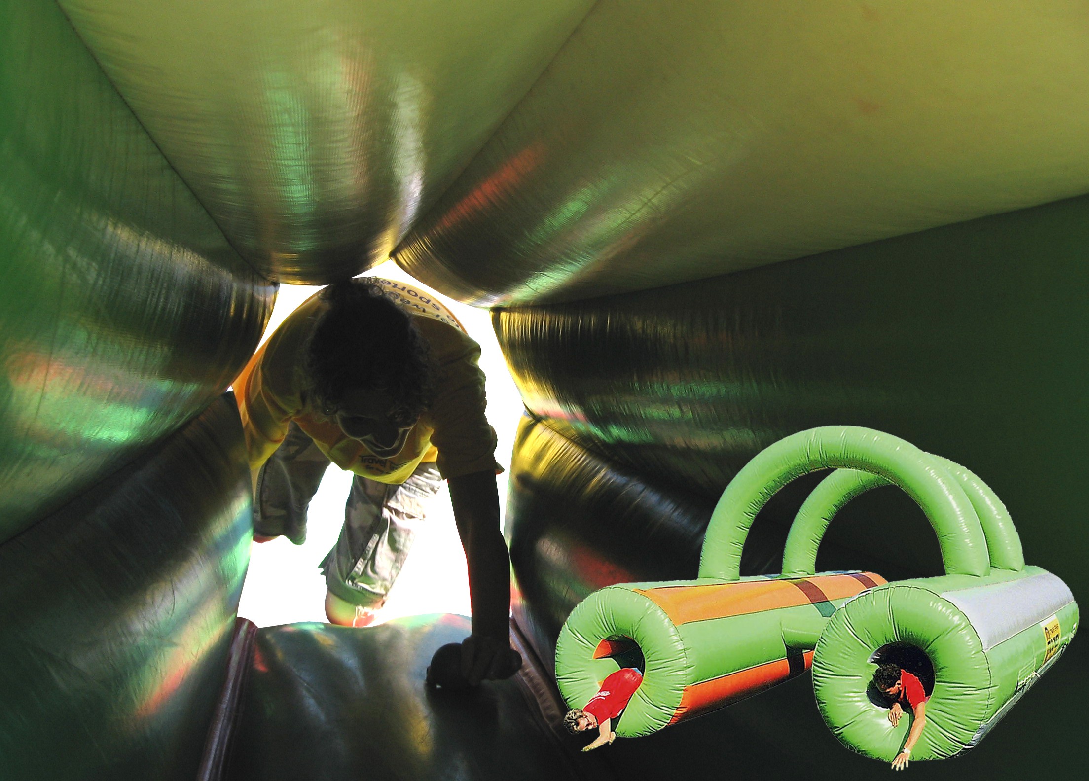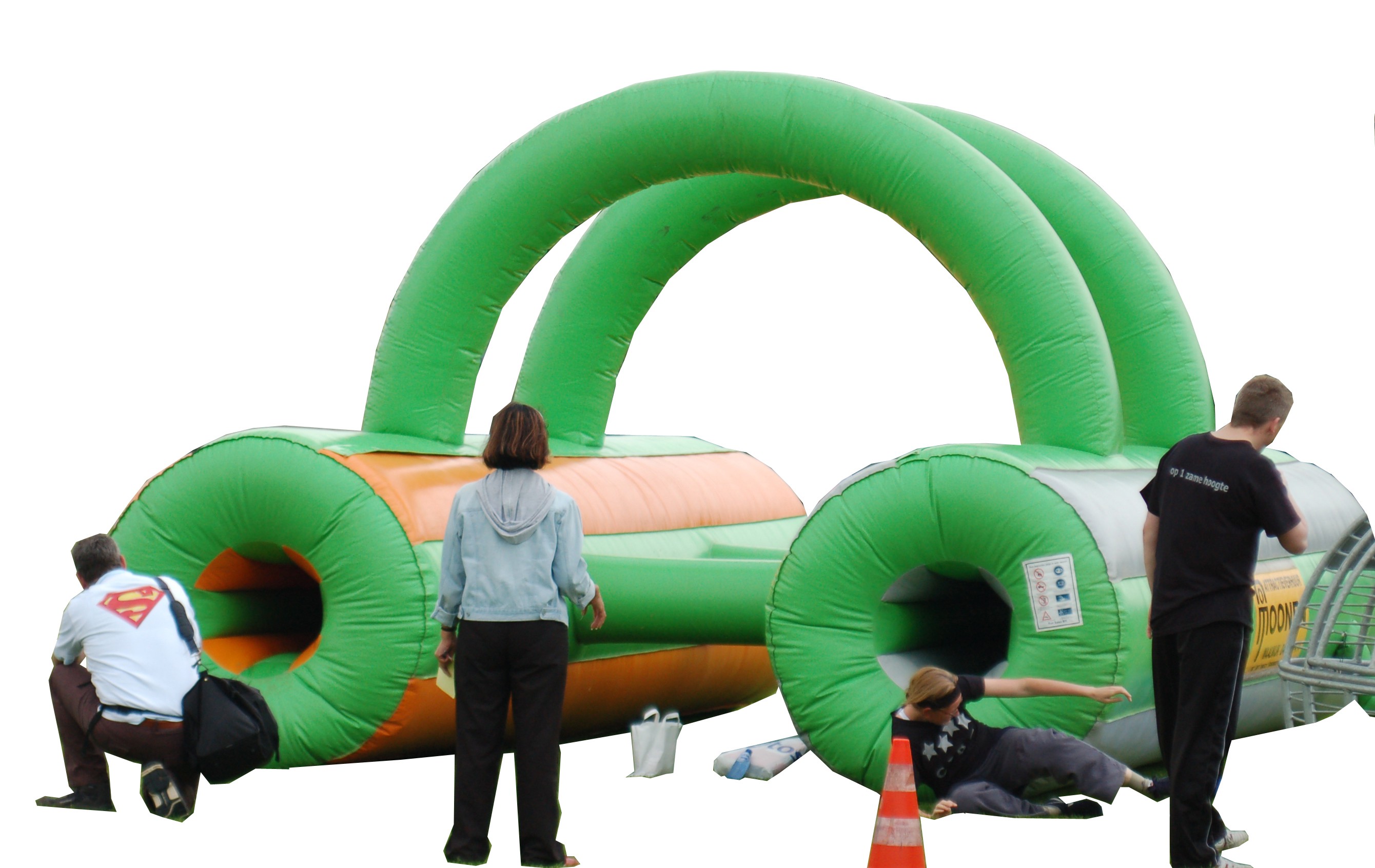 Deze opblaasbare kruiptunnel is te gebruiken als spel opzich, maar kan ook gebruikt worden in combinatie met andere zeskamp spellen.
