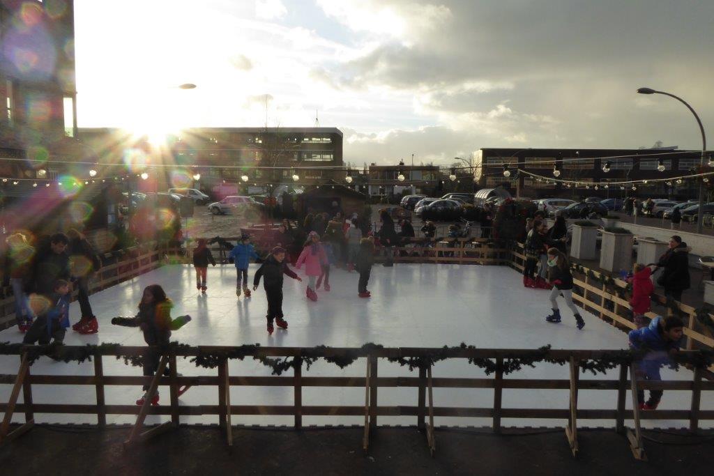 Wordt schaatsklaar geleverd, dus inclusief schaatsjes, gelegenheid om van schoenen/schaatsen te wisselen en een prachtige boarding van houten hekjes!
