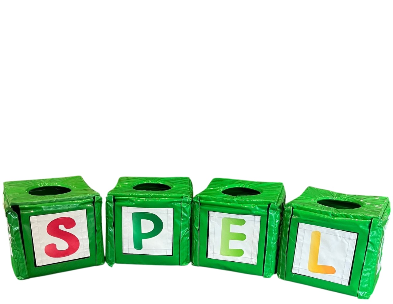 Breng woorden tot leven met deze set van 4 opvallende groene letterpakken – perfect voor hilarische spellen, campagnes of educatieve activiteiten.