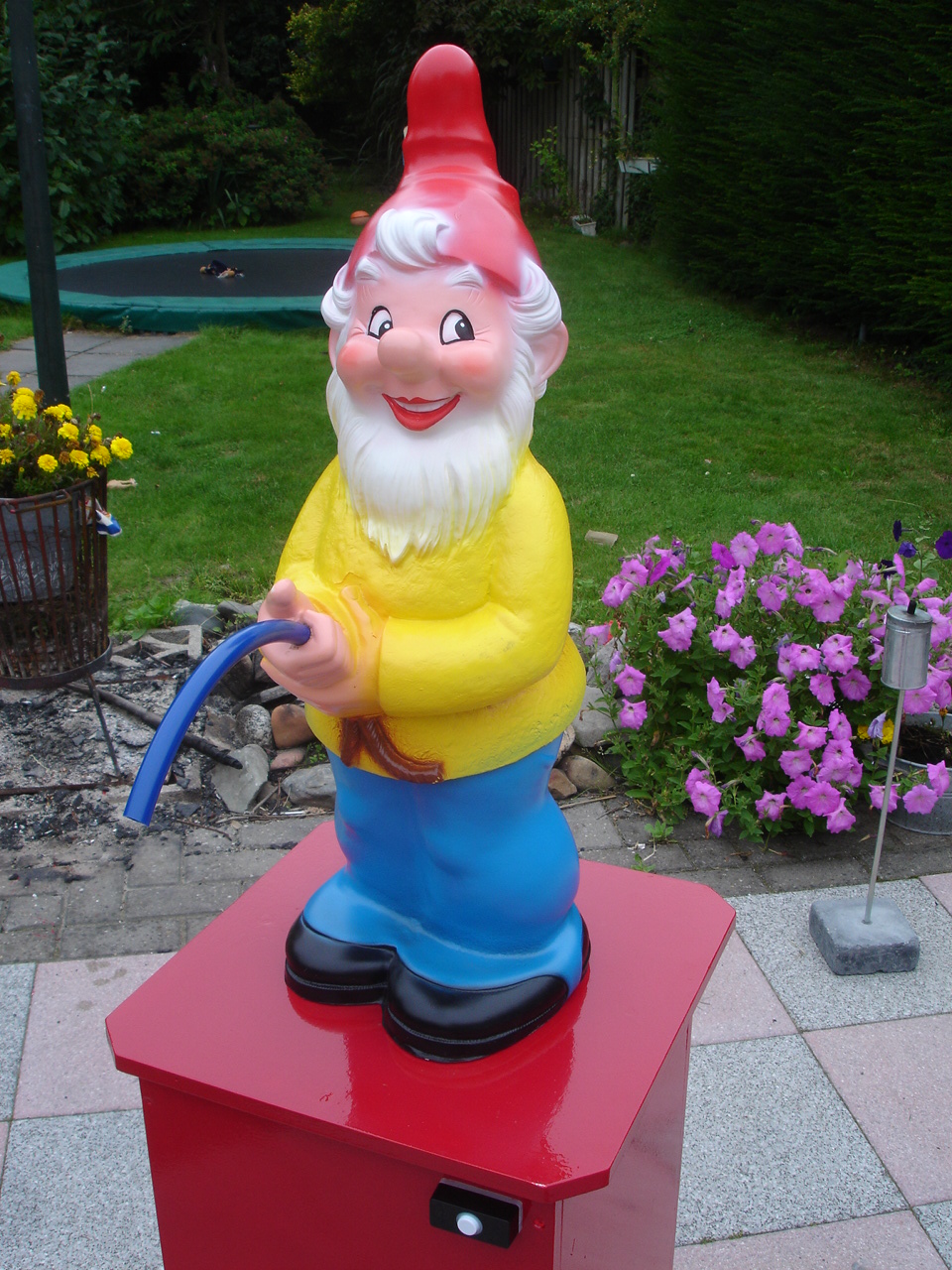 Druk op de knop en deze kabouter sproeit limonade.