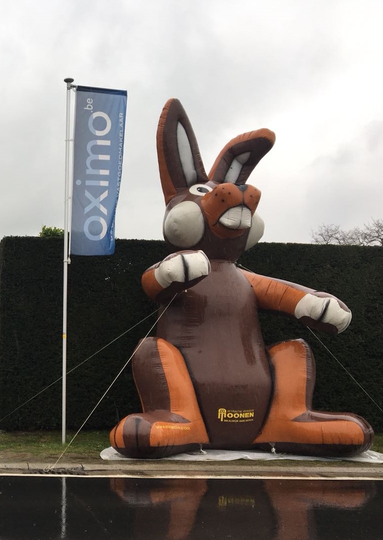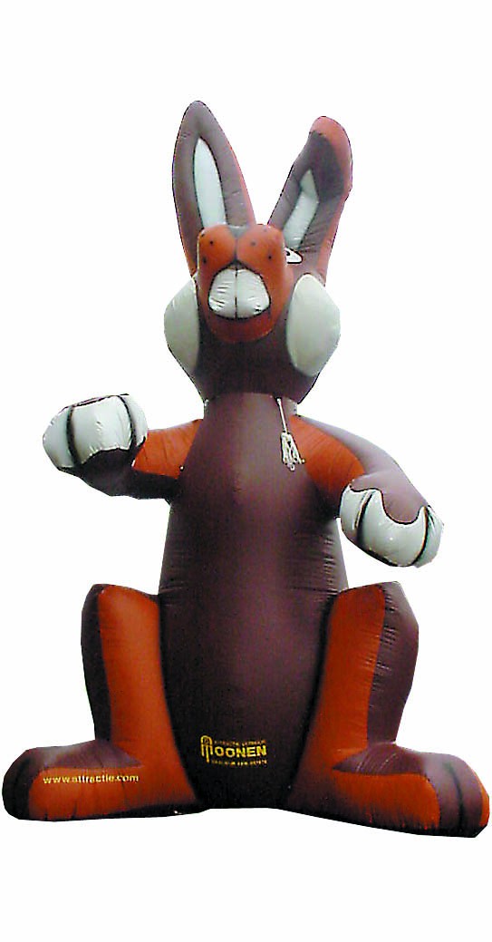Een opblaasbare paashaas. Leuk tijdens pasen.