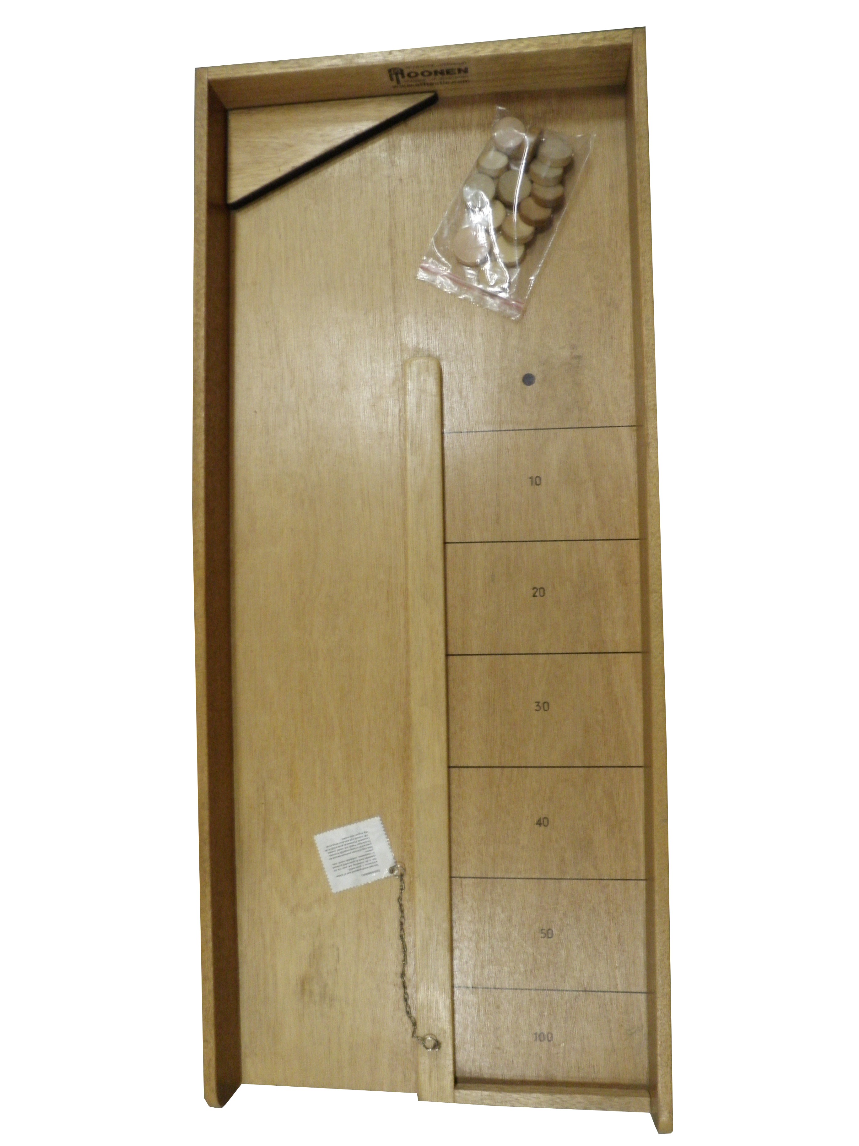 Sjoelen maar dan net anders. Schuif de schijf in een vlak komt met punten. De weg dat de schijf moet afleggen maakt het lastig.
