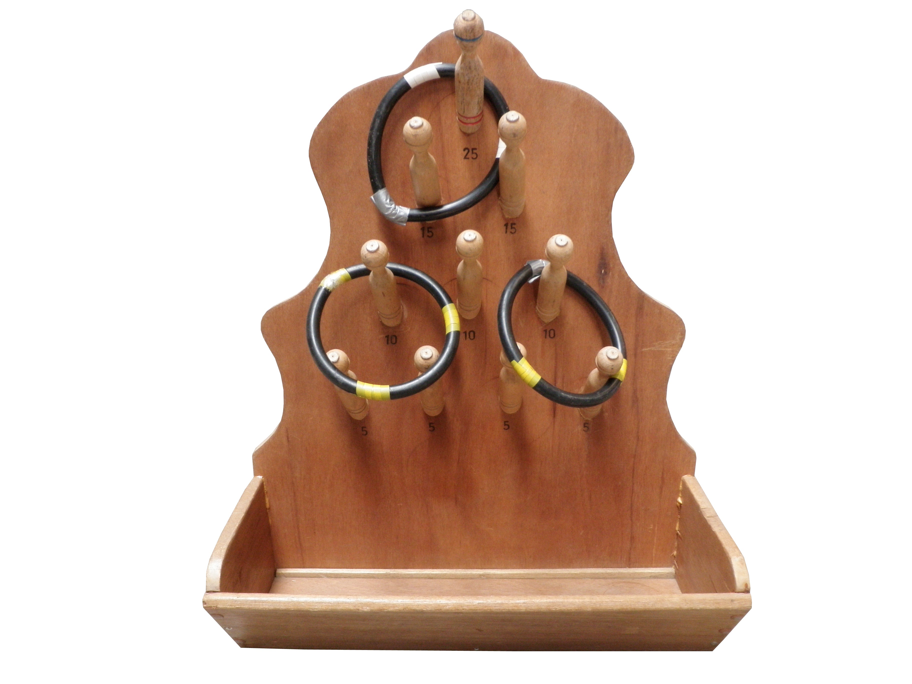 Gooi de ringen om de staven heen. De deelnemer met de meeste punten heeft gewonnen.