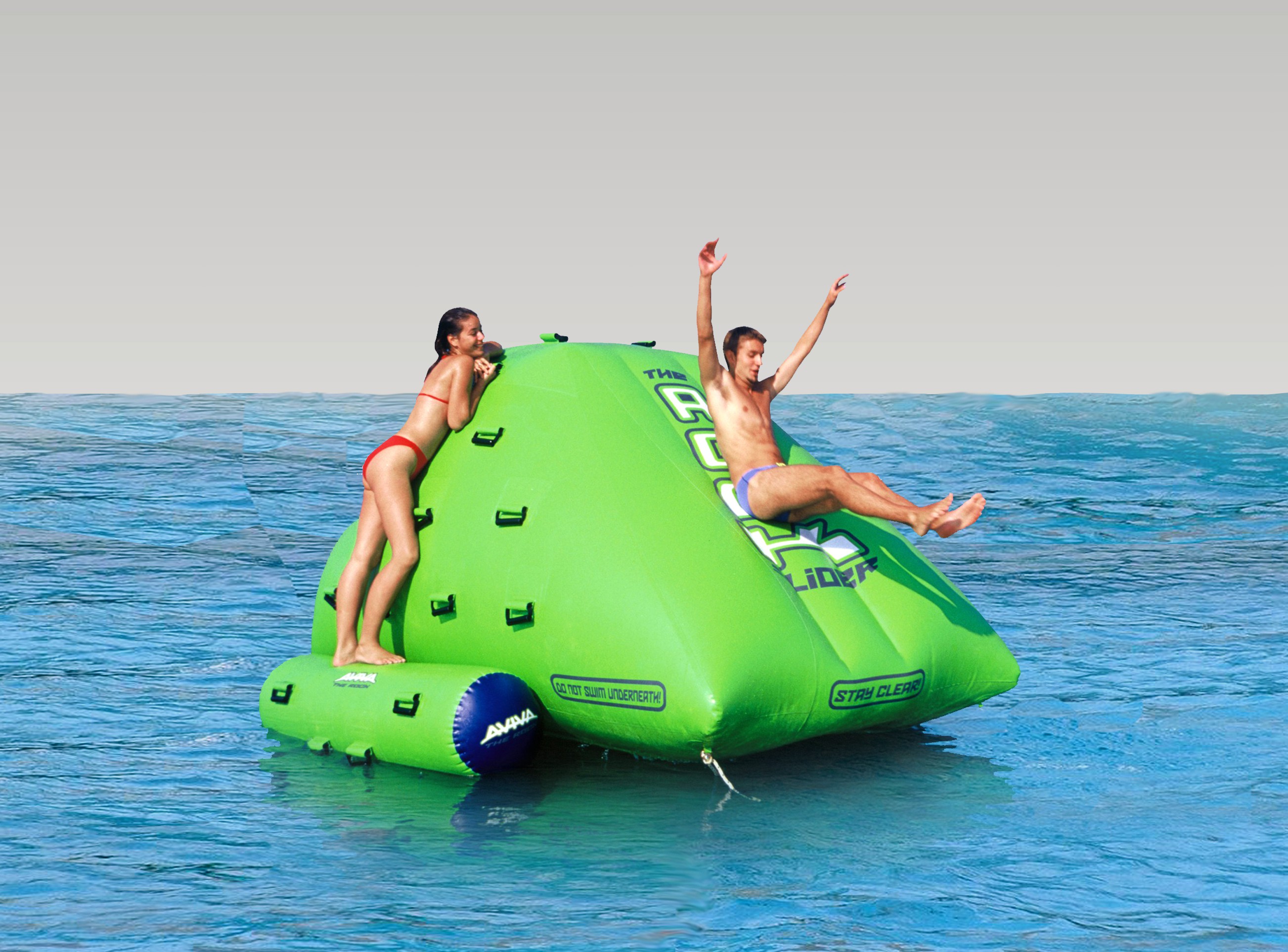 spectaculaire waterattractie. Eerst klim je de berg op en daarna glij je naar beneden het water in.