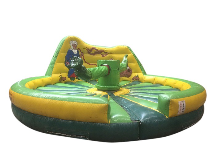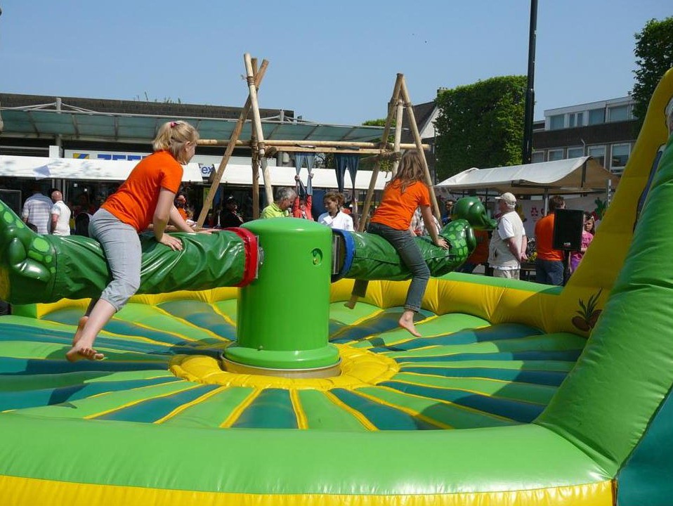 Ben jij een echte krachtpatser en wil je aan iedereen laten zien dat je een echte doorzetter bent? Dan is deze Rodeo krokodil de ideale optie voor jou evenement. Bij deze begint de strijd dus door allebei aan een kant te gaan hangen. Daarna wordt er door de evenementenbegeleider op een knop op de bedieningskast gedrukt en begint de rodeo roterende bewegingen te maken. Naarmate de tijd vordert gaan de bewegingen steeds sneller en wordt het dus steeds moeilijker om te blijven hangen. Wie uiteindelijk het langst blijft hangen wint de strijd. Deze rodeo is dus ook uitermate geschikt voor een 6 kamp waarbij telkens 2 teams tegen elkaar strijden. De rodeo zelf kan je laten draaien op 220 volt wat een plus is want niet iedereen heeft natuurlijk 380 volt op locatie. Wel moet er een stroompunt binnen de 25 meter van de rodeo zitten om zo de spanningslijn van de rodeo te kunnen aansluiten. Dus hoe lang ga jij hangen? Laat het zien en huur deze attractie gemakkelijk en snel via de website of benader een van onze deskundige collega's.
