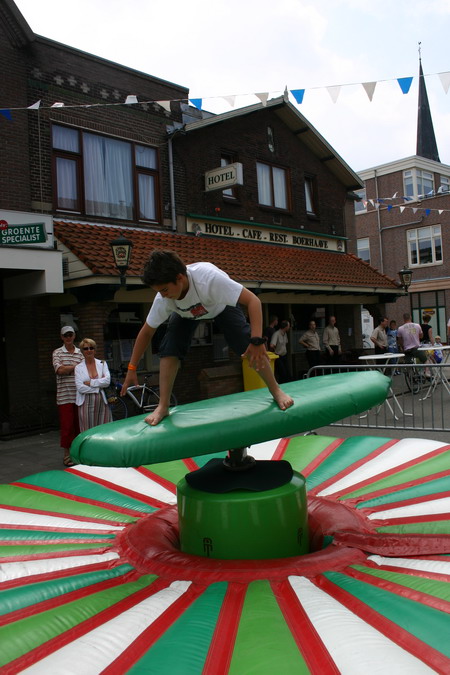 Ook wel eens willen surfen op zee ? Met deze surfsimulator krijgt u hier een idee van. Hoe lang hou jij het vol voordat je van de surfplank valt? Wees niet bang, van de surfplank vallen doet bij deze rodeo surf zeker geen pijn.