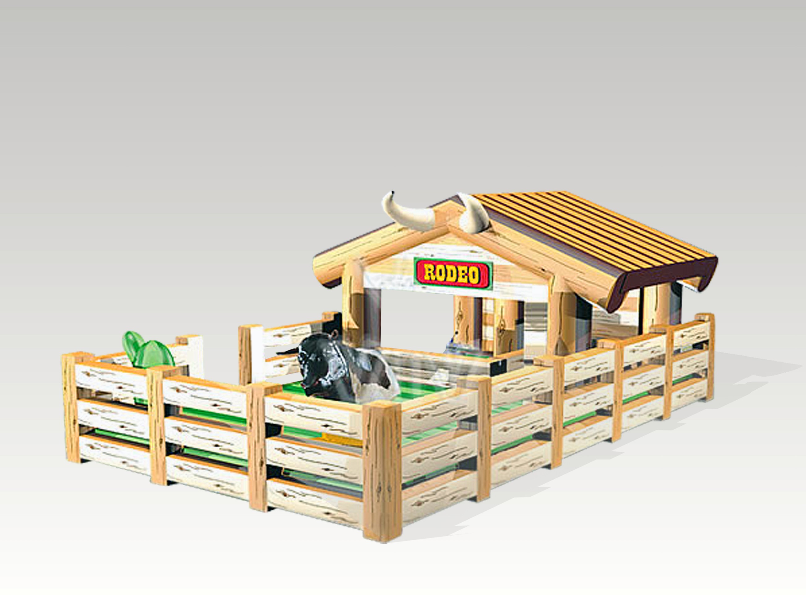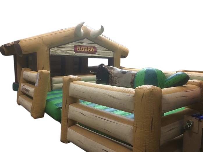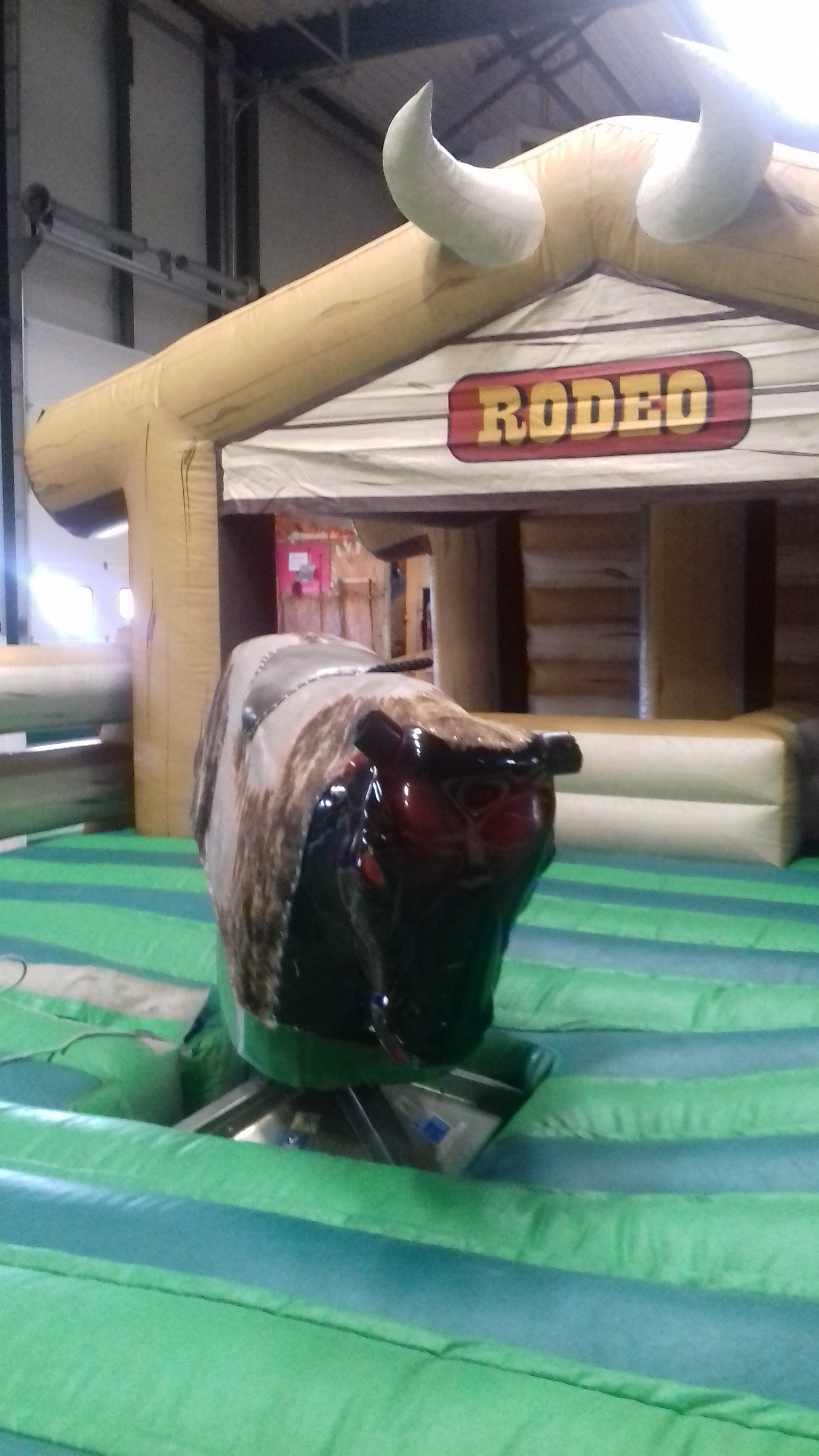 Deze rodeo met spectaculair country ride decor is gebaseerd op de originele American Bull. Bestijg de attractie, neem een cowboyhoed in de hand en probeer te winnen van deze spectaculaire Amerikaanse stier. Ben jij een echte doorzetter en versla jij de bull? De attractie kan door één persoon worden bediend. Er wordt gebruik gemaakt van een gebruiksvriendelijk bedieningspaneel. De stier kan in verschillende snelheden en niveaus gebokt en gedraaid worden. Ieder individu kan op zijn of haar niveau worden uitgedaagd. Voor deze rodeo is een vrije en onbelaste spanningslijn vereist. De benodigde stroomvoorziening bedraagt 230V/16A. Daarnaast moet deze spanningslijn binnen 25 meter van de stroombron staan en mag er geen andere apparatuur op zijn aangesloten. De totale lengte van de attractie inclusief decor bedraagt 10 meter. De breedte is 6 meter en de hoogte 3.5 meter. Huur nu deze originele Amerikaanse rodeostier met prachtig Amerikaans decor en maak uw evenement onvergetelijk. Super voor zowel jong als oud.