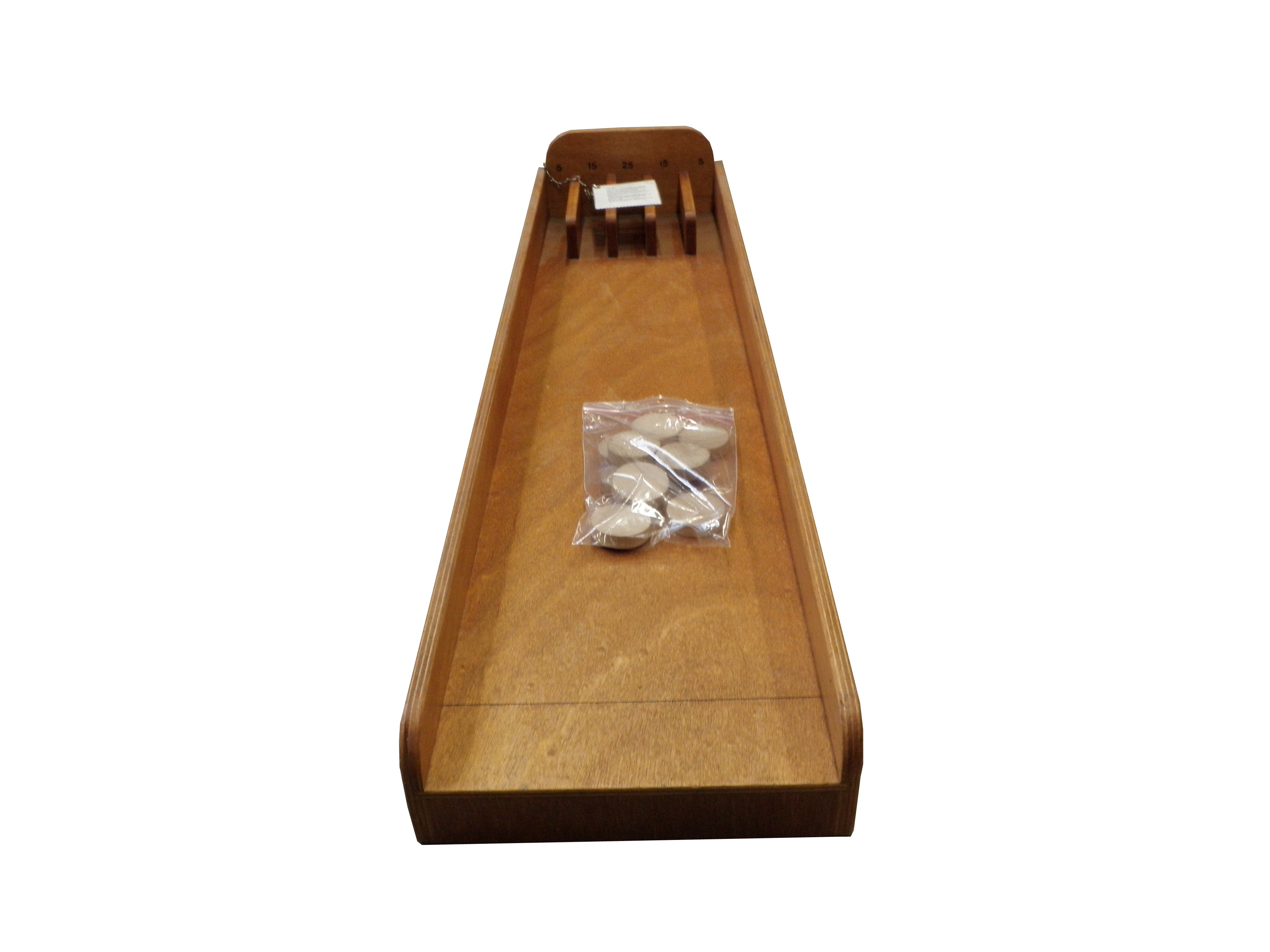 De rolbaan is een variant van sjoelen. De schijven moeten in plaats van plat op de bak nu op de zeikant zodat ze rollend in de gaten gaan.
