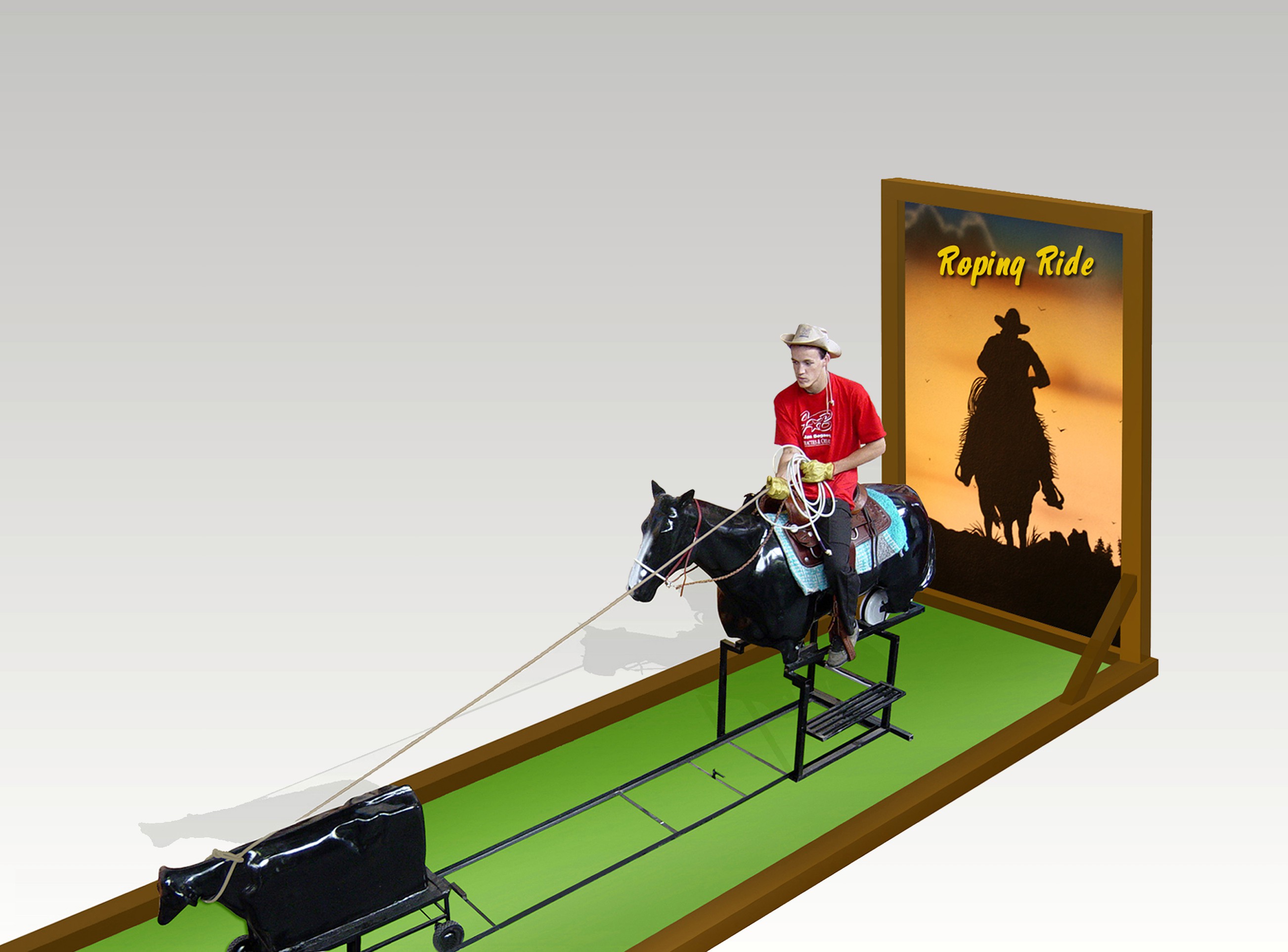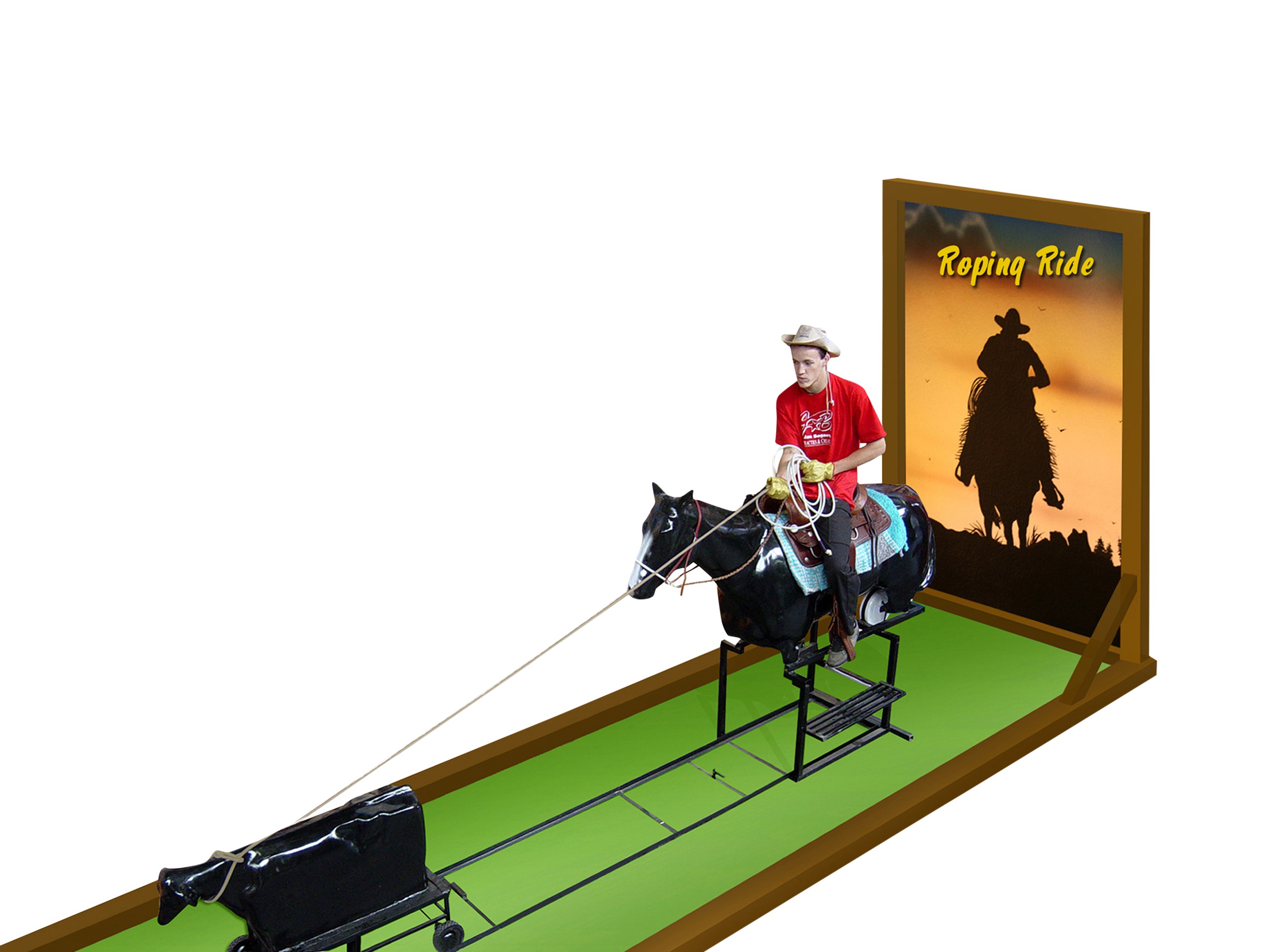 Bij de Roping ride gaat het paardje rijden en moet de “cowboy” proberen het paard te vangen met de lasso.