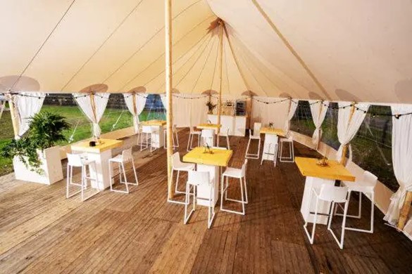 De sailcloth tent is een stijlvolle, romantische tent die zorgt voor een sfeervolle uitstraling op uw evenement. Bij het plaatsen van een sailcloth tent heeft u de keuze om de tent zowel open als dicht te laten plaatsen. Hierdoor is deze tent een goede oplossing voor alle weeromstandigheden.