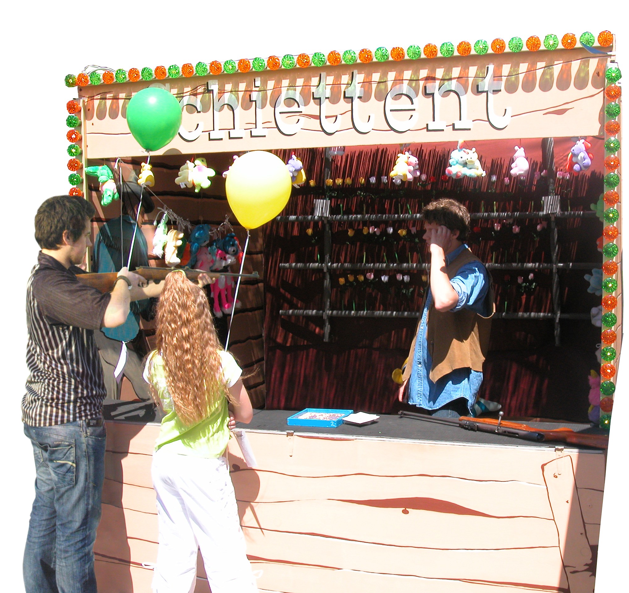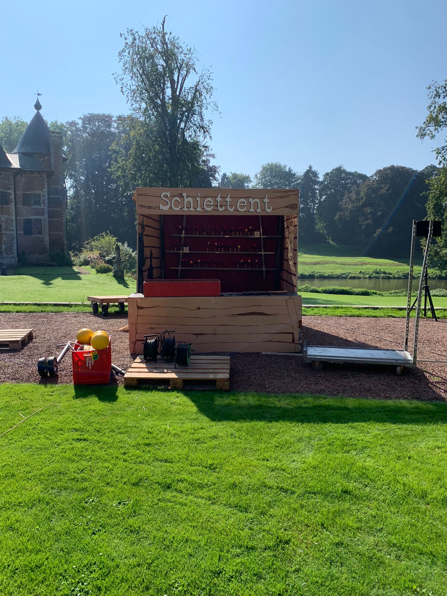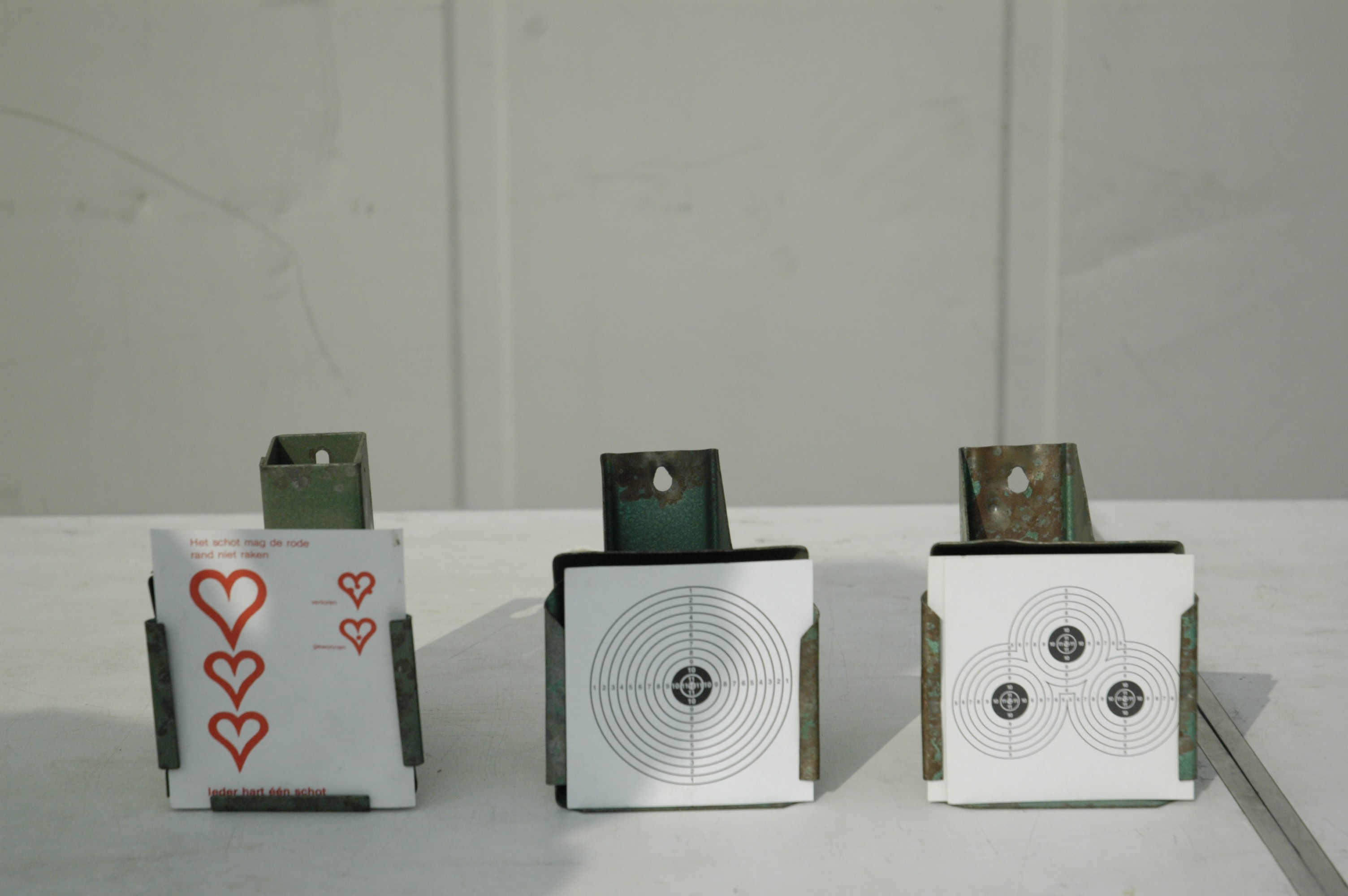 Probeer zoveel mogelijk punten te schieten op de scorekaarten of probeer een roosje neer te schieten. Deze schiettent in inclusief 2 buksen en kogeltjes