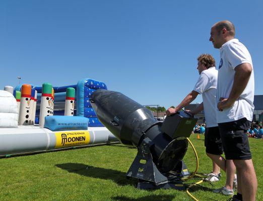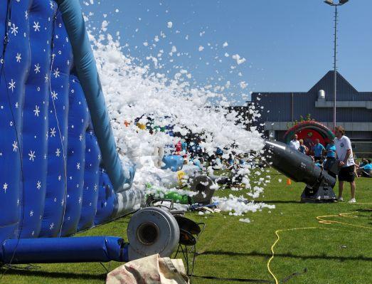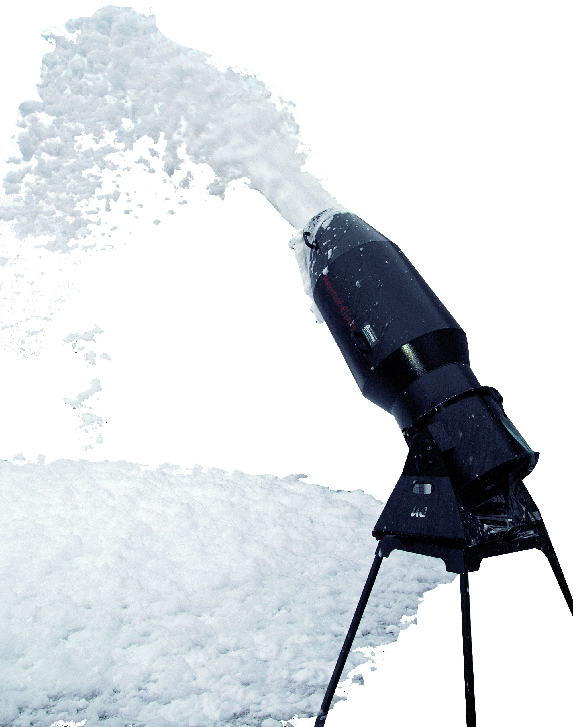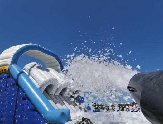 Dit schuimkanon staat gevestigd op een stevig statief.