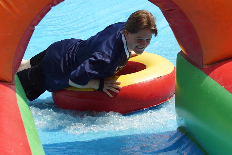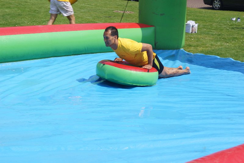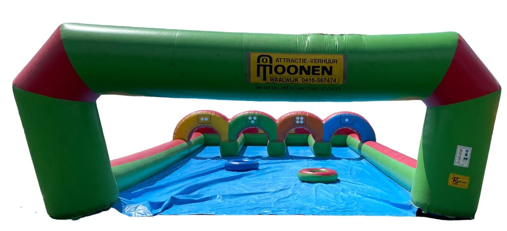 In plaats van met het houten schijfje sjoelen, ben jij nu zelf het schijfje. Met deze levende sjoelbak luchtkussen.