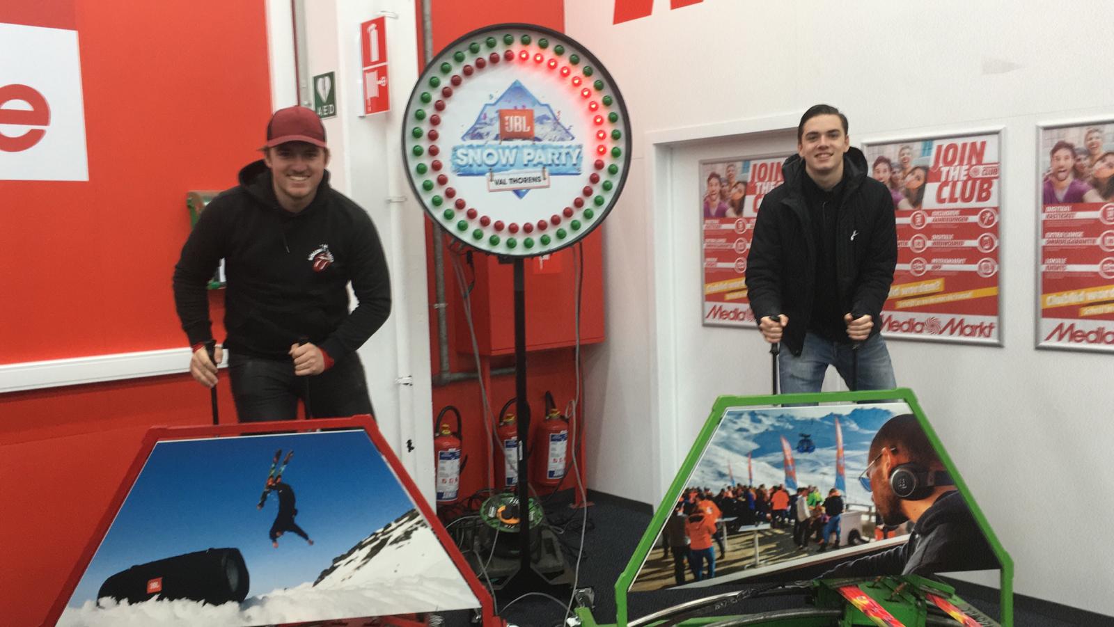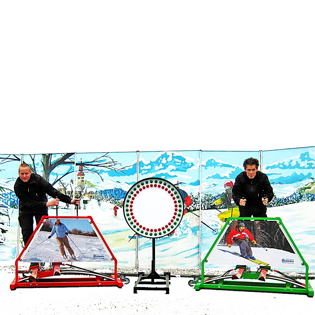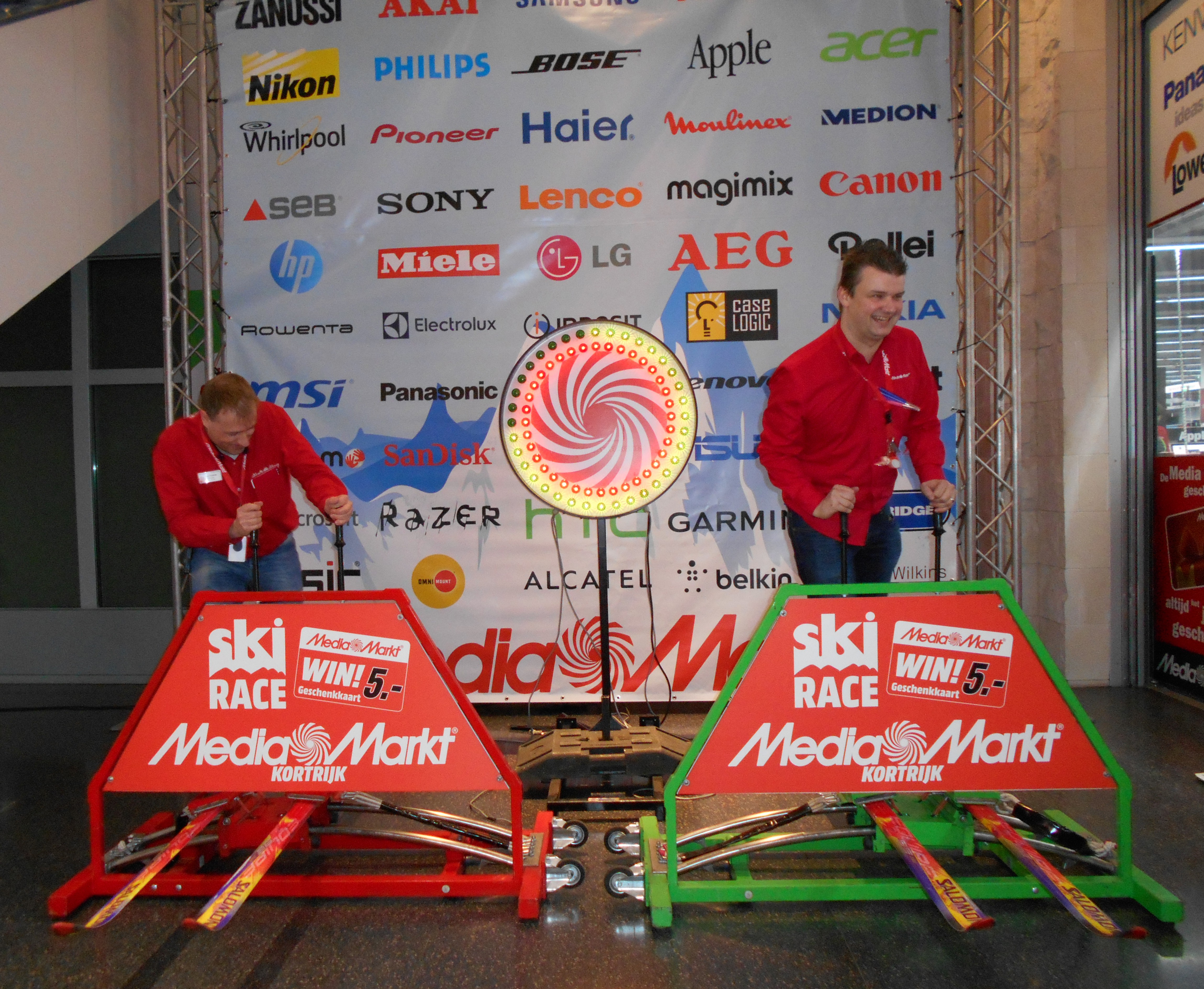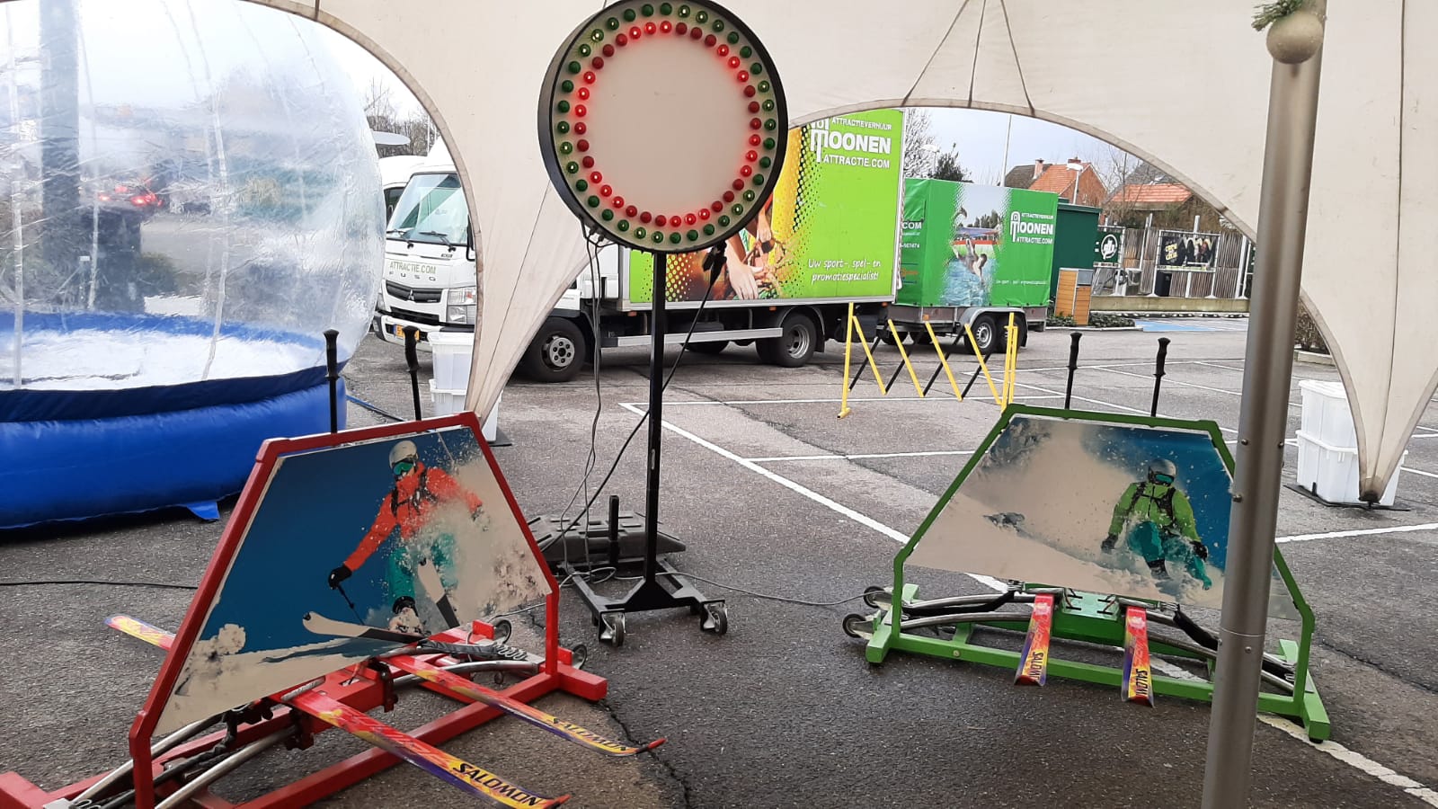 Nek aan nek skieën tegen de klok, bent u sneller dan uw buurman? Door snel heen en weer te bewegen gaan de lampjes op de klok in de rondte, wie krijgt de klok als eerste vol? Deze attractie is ook goed te personaliseren met uw reclame.