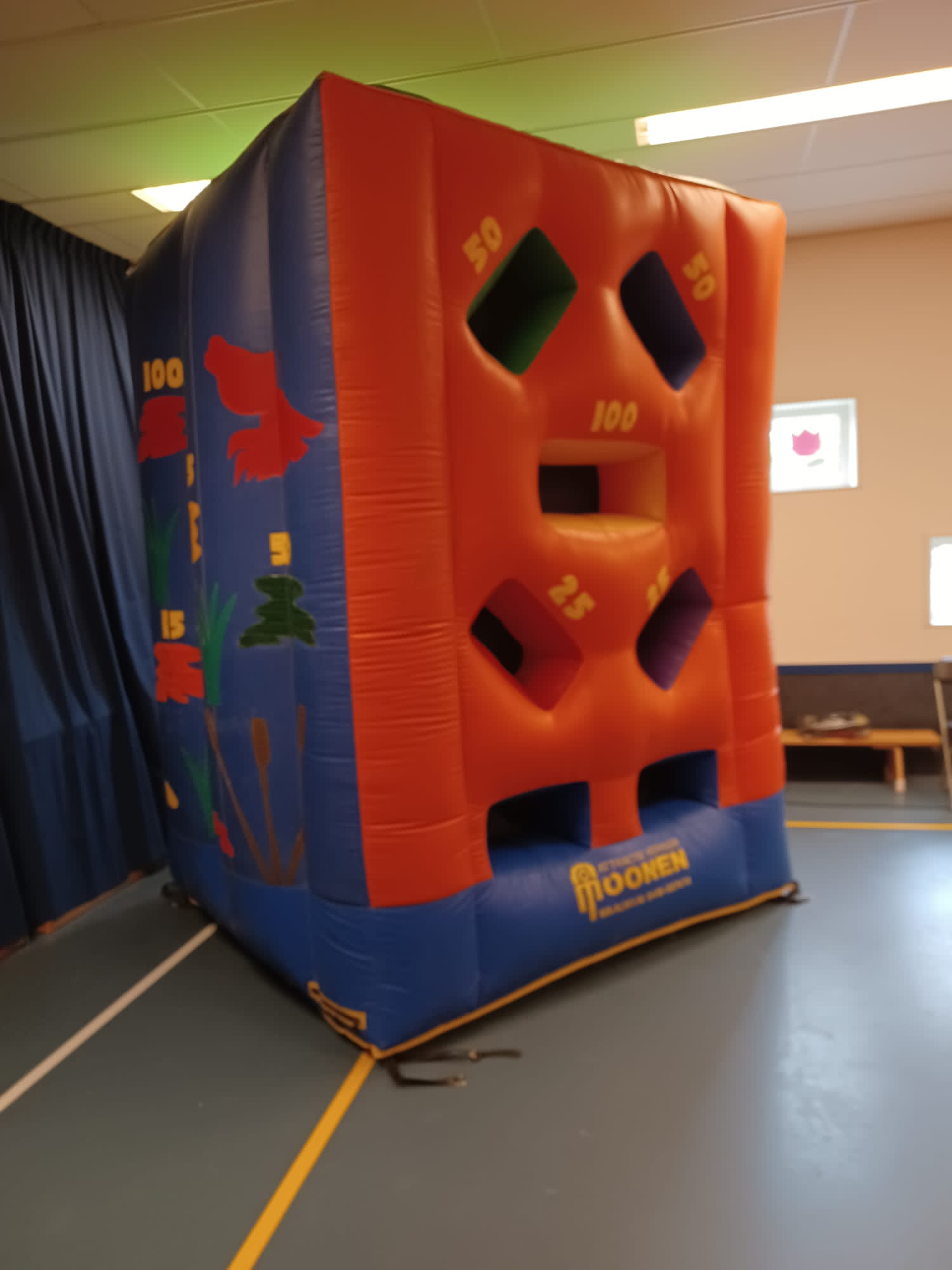 Kinderen kunnen zich uren vermaken met deze leuke speltoren. De speltoren heeft 4 kanten en op iedere zijde een ander leuk spel. De verschillende spellen zijn: ringwerpen, balwerpen, zakjes gooien en kleefbeestjes werpen (klittenband). Door de variëteit van dit spelkussen zullen kinderen zicht niet snel vervelen.