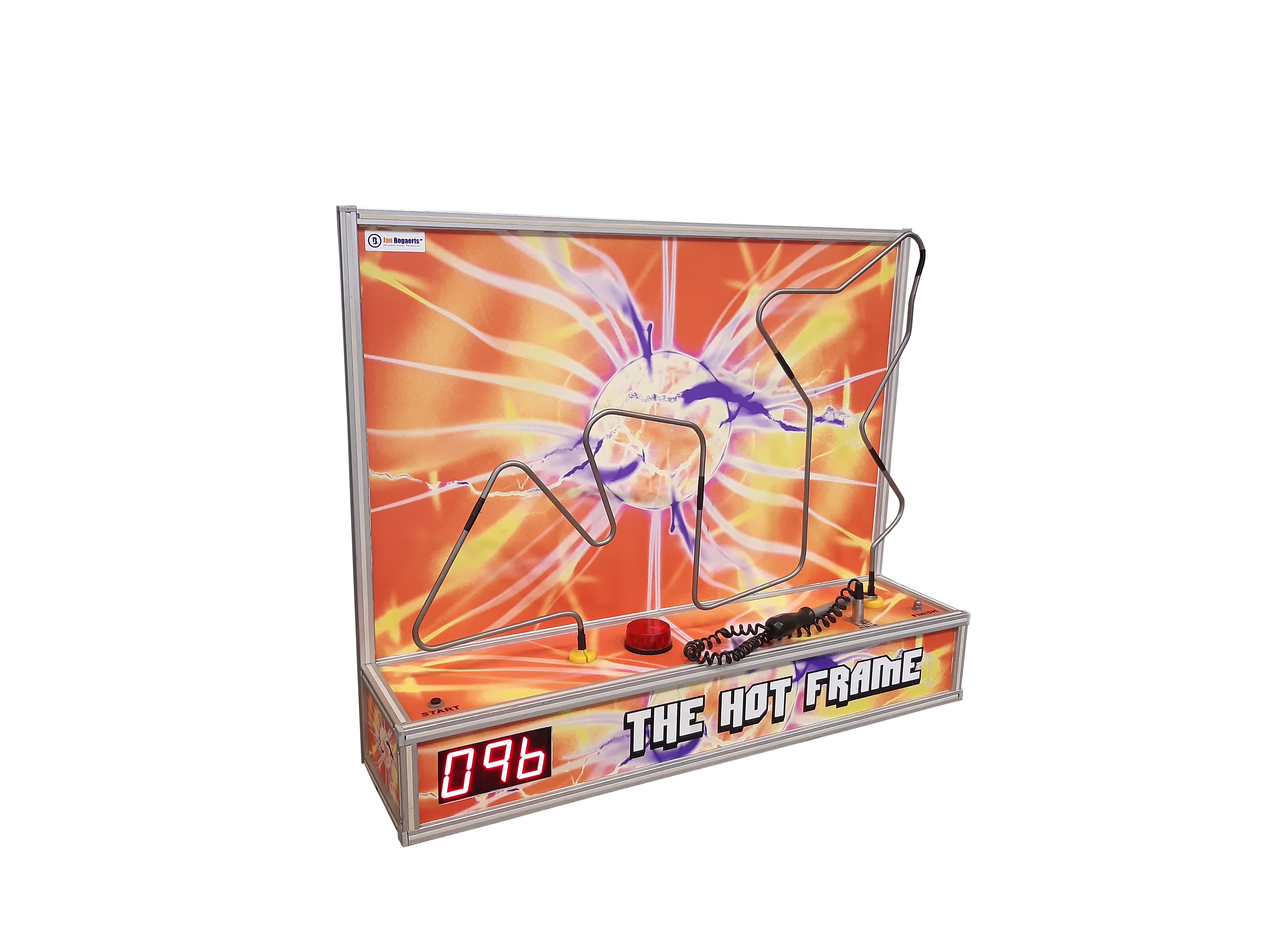 Probeer met de ring het frame te volgen zonder deze te raken. Indien men het frame raakt treedt het licht en geluid in werking. Met led display. Perfect te branden volgens uw opmaak.
