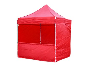Opvallende shelter, voorzien van 3 dichte zijwanden en bijzonder geschikt voor acties, presentaties, ballonwedstrijden, flyerstand ect…