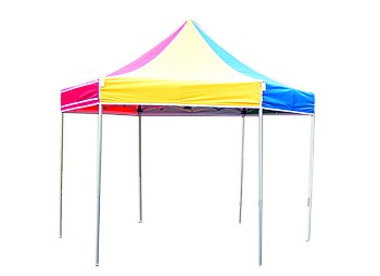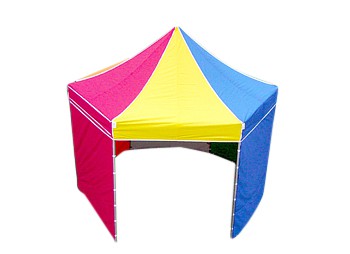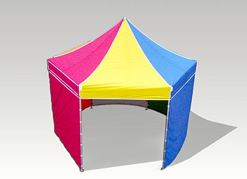 Opvallende shelter, voorzien van 3 dichte zijwanden en bijzonder geschikt voor acties, presentaties, ballonwedstrijden, flyerstand ect…